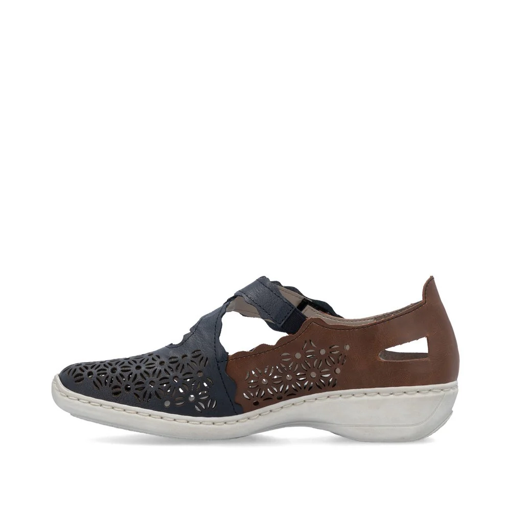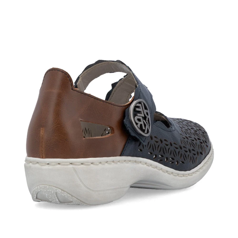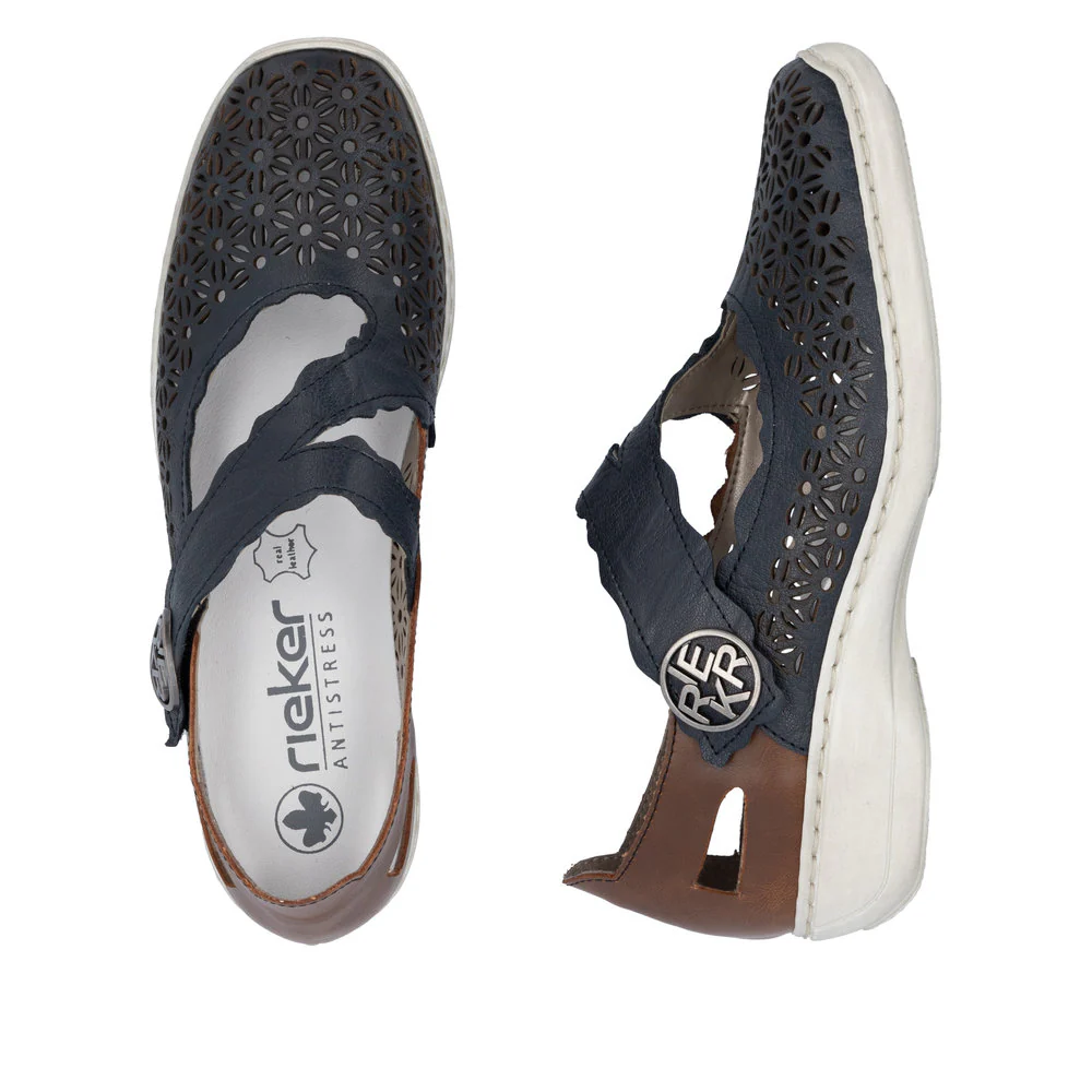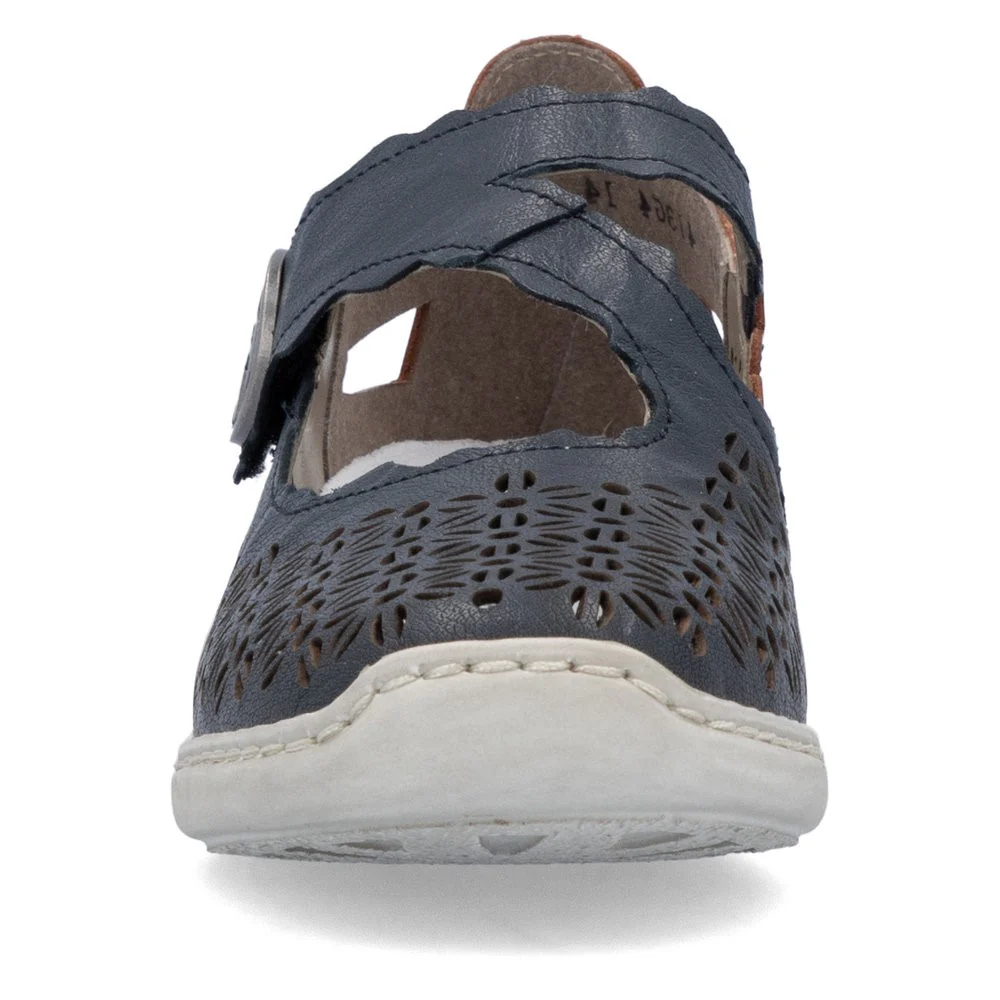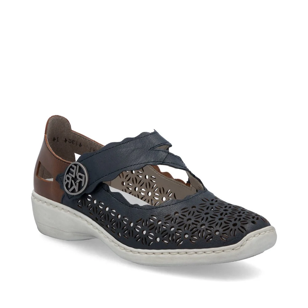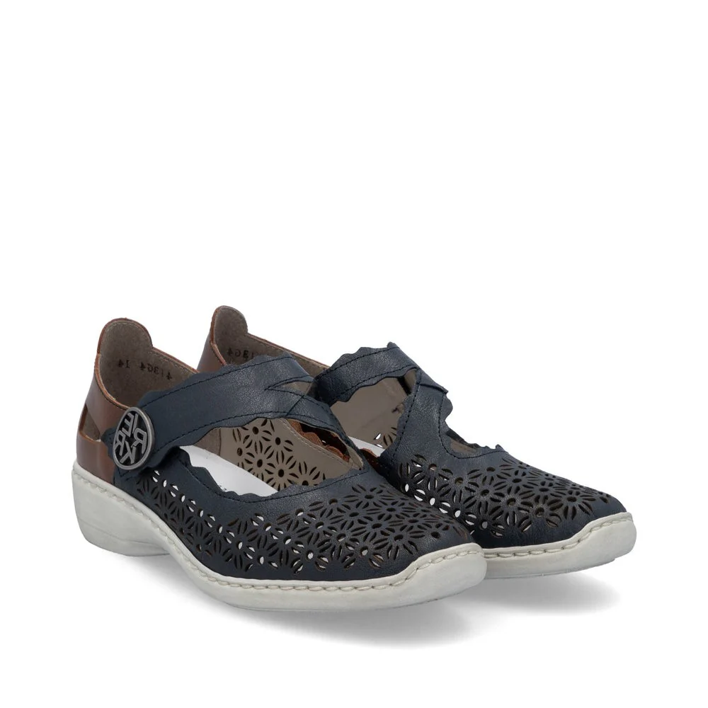 La chaussure Mary Jane 413G4-14 par Rieker est le parfait allié pour la saison estivale. Son motif perforé élégant offre à la fois une respirabilité et un style incomparable. Sa construction légère en fait un choix parfait pour le quotidien. Avec la semelle amortissante et légère avec talon légèrement compensé, vos pieds profiteront de la meilleure expérience de marche à chaque pas.