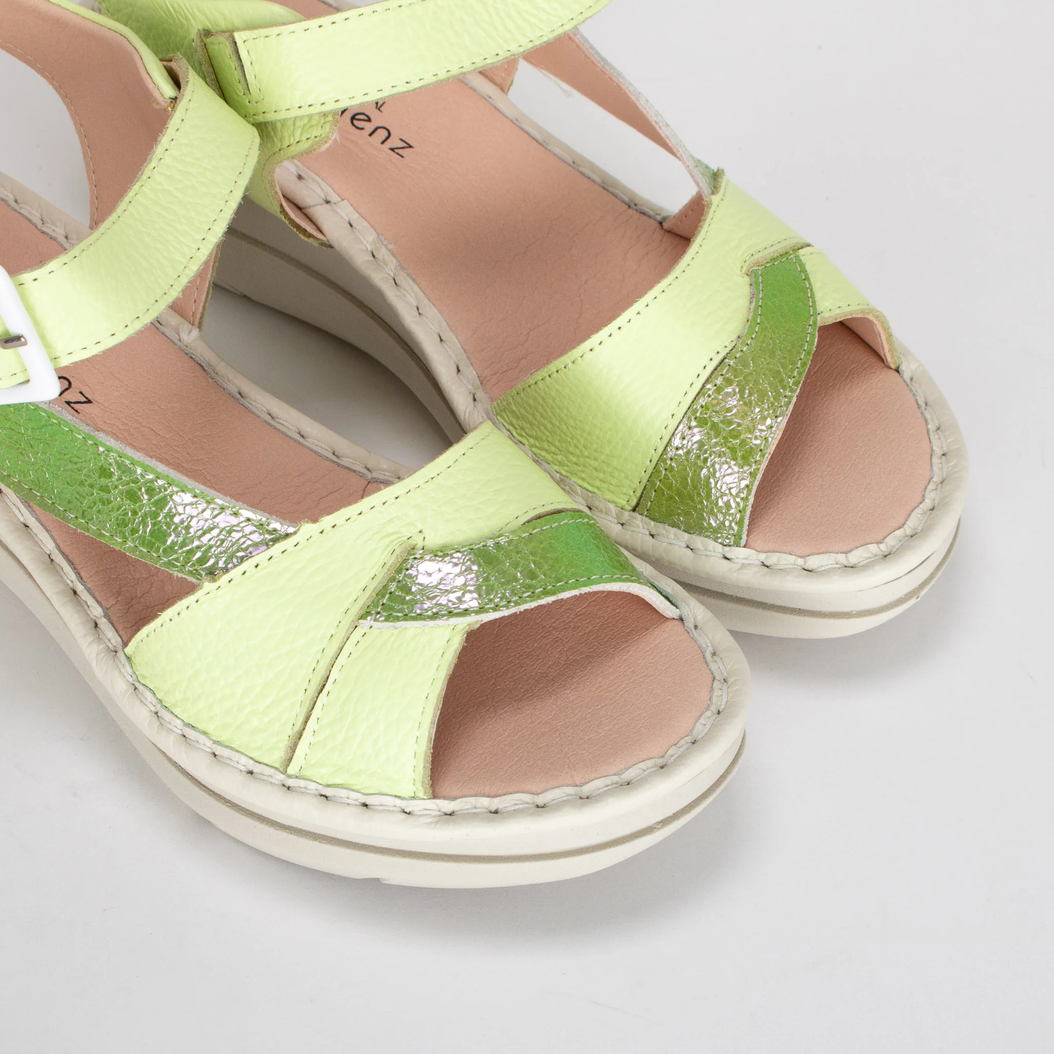 Cette sandale verte est un mélange parfait de style, de confort et de sophistication. Améliorez votre collection de chaussures avec cette sandale compensée chic qui combine sans effort un design avant-gardiste avec des matériaux haut de gamme. Le talon compensé ajoute une touche de hauteur sans compromettre le confort, ce qui en fait un choix idéal pour les occasions décontractées et semi-formelles.