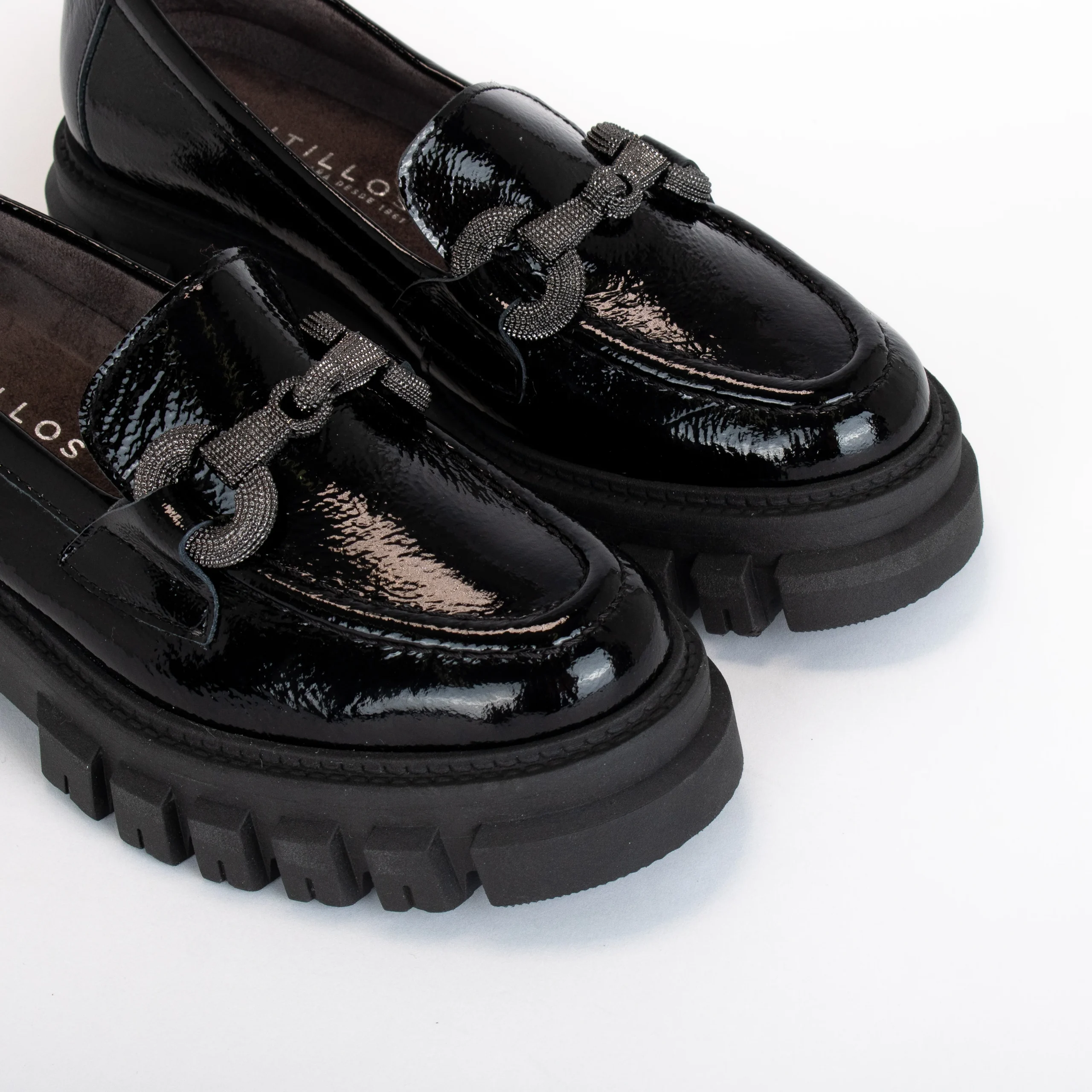 Adoptez le style anglais de façon audacieuse, mais tout de même élégante avec ce loafer plateforme de la marque Pitillos. Il attire les regards tout en vous impressionnant par son confort et la qualité de ses matériaux. La doublure en textile pelucheux est respirante et absorbante et offre à vos pieds un confort supplémentaire. Sa semelle crantée offre une adhérence hors pair et assure une bonne stabilité.