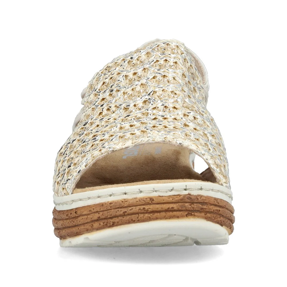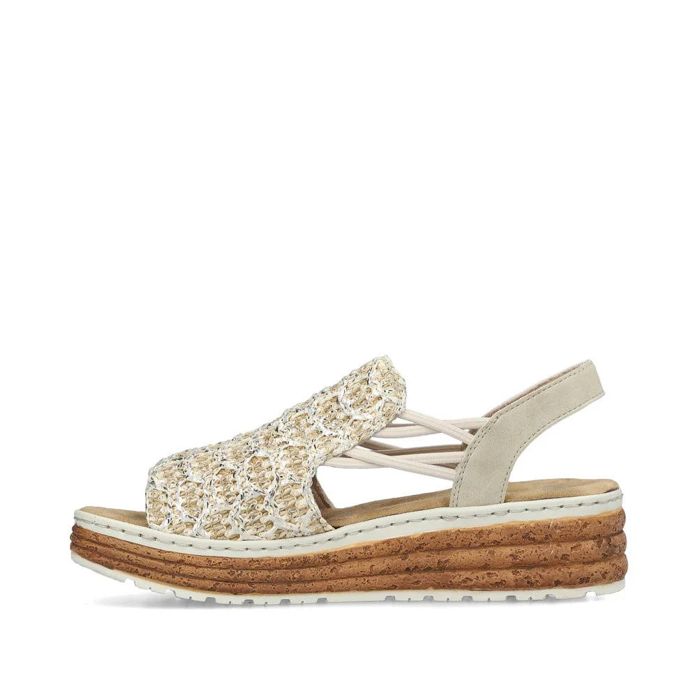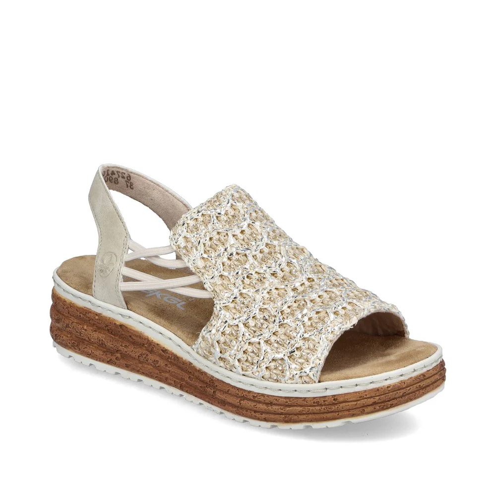 Ces sandales compensées signées Rieker ajouteront un touche de couleur et de texture agréable à vos tenues quotidiennes estivales. L’entrée est facilitée par un élastique. Le motif à rayures sur la semelle attire tous les regards. La semelle amortissante et très légère offre un confort durable, même pendant les longues journées. De plus, la semelle intérieure extra douce offre un confort supplémentaire.