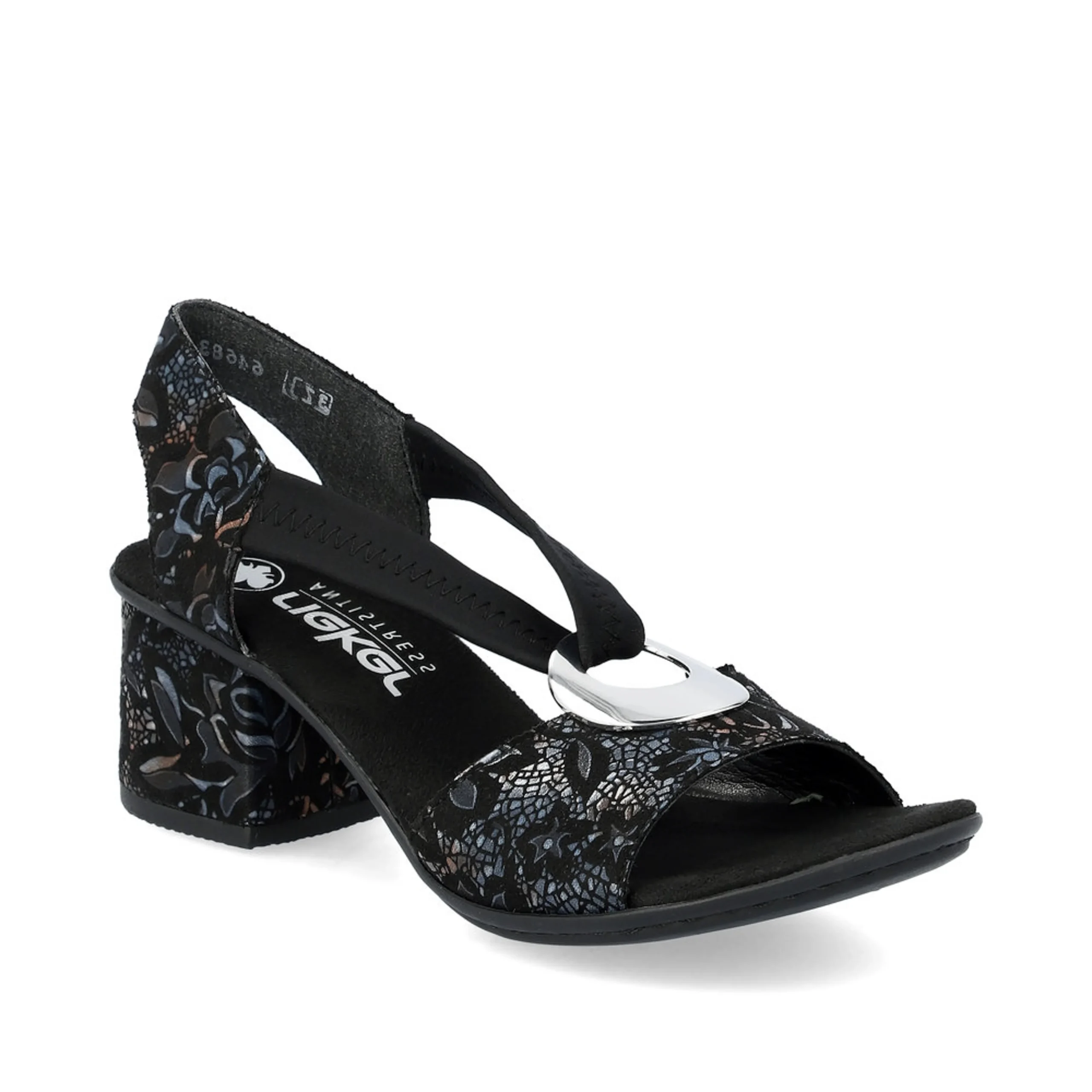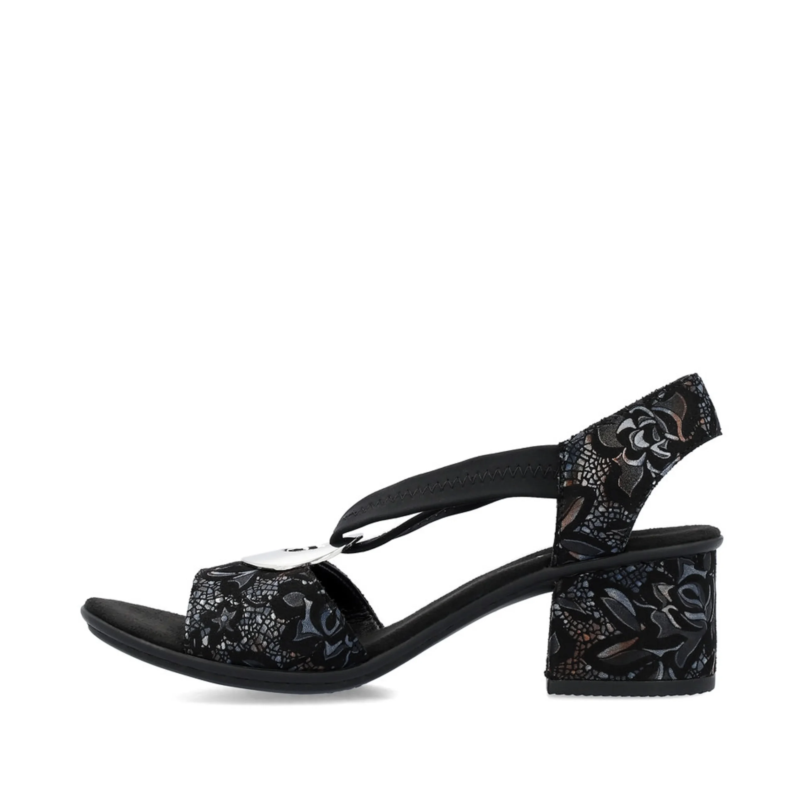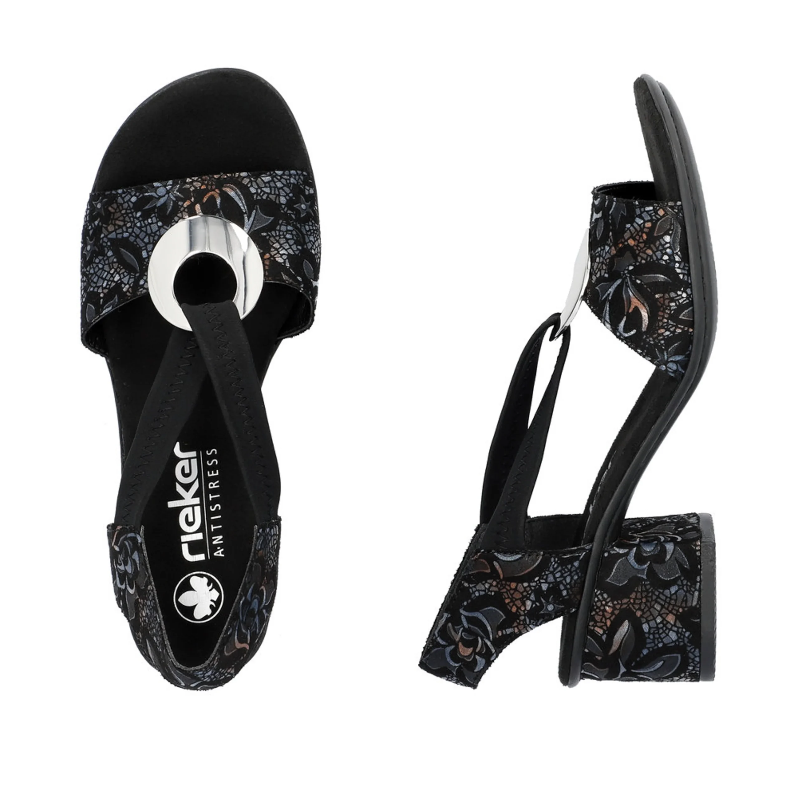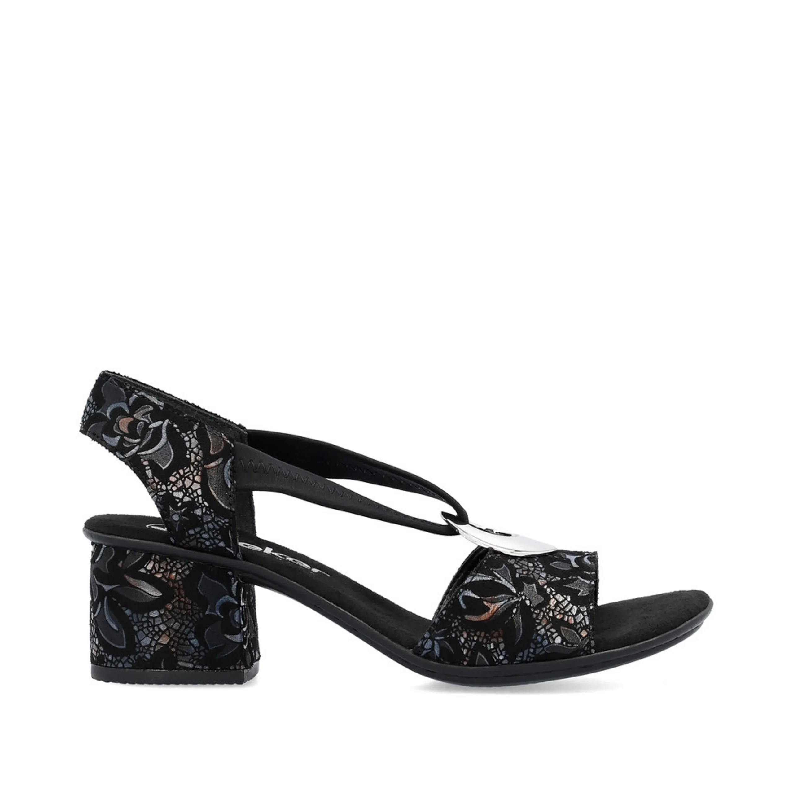 Cette sandales de Rieker s’agencera parfaitement à vos tenues chics cet été. Celle-ci est décorée d’un joli motif ainsi qu’une boucle ronde argentée, ajoutant une touche élégante et féminine. La bride élastique situé sur le dessus de la sandale permet un enfilage facile et rapide. La semelle dotée de la technologie Antistress offre un confort optimal, idéal pour des heures de danse!
