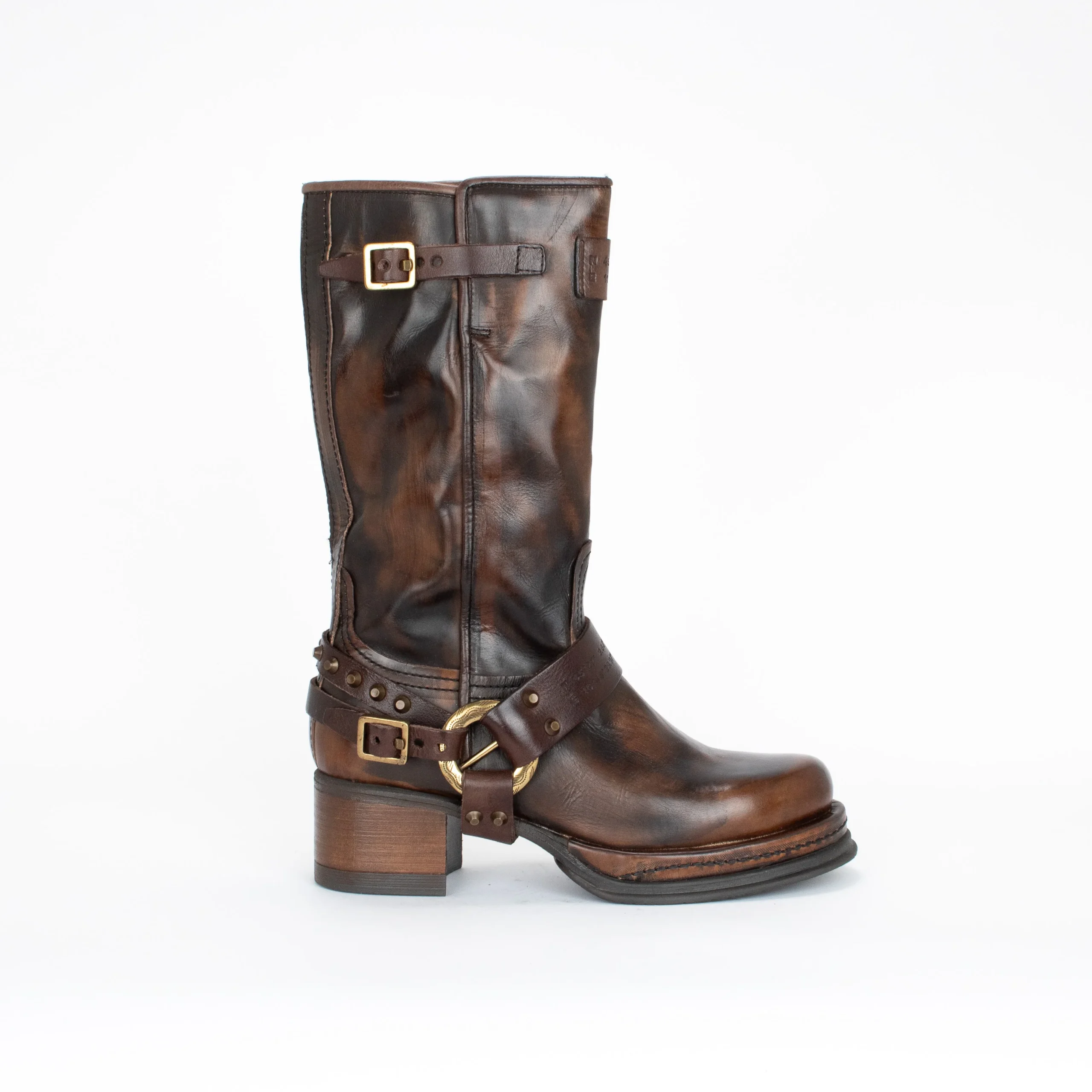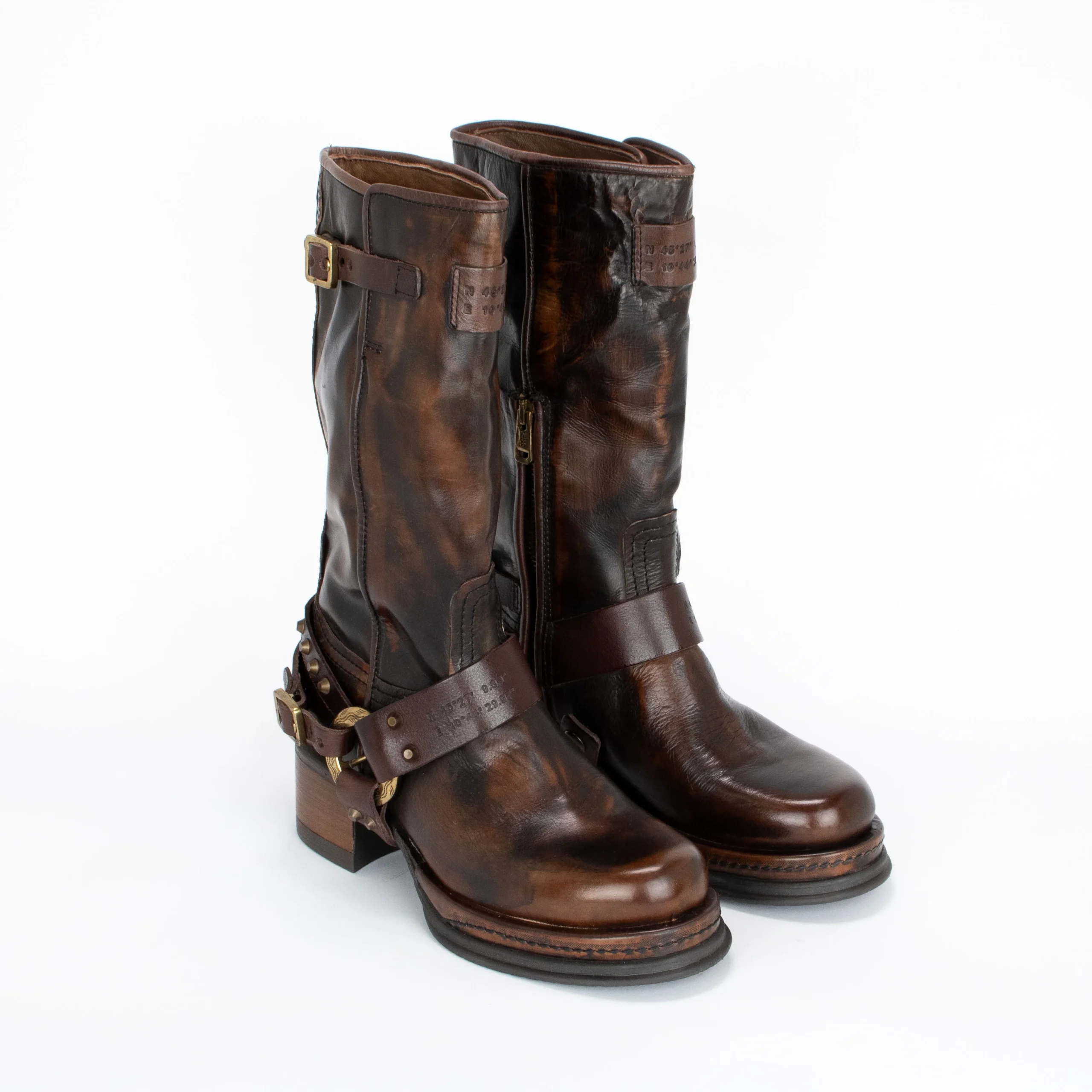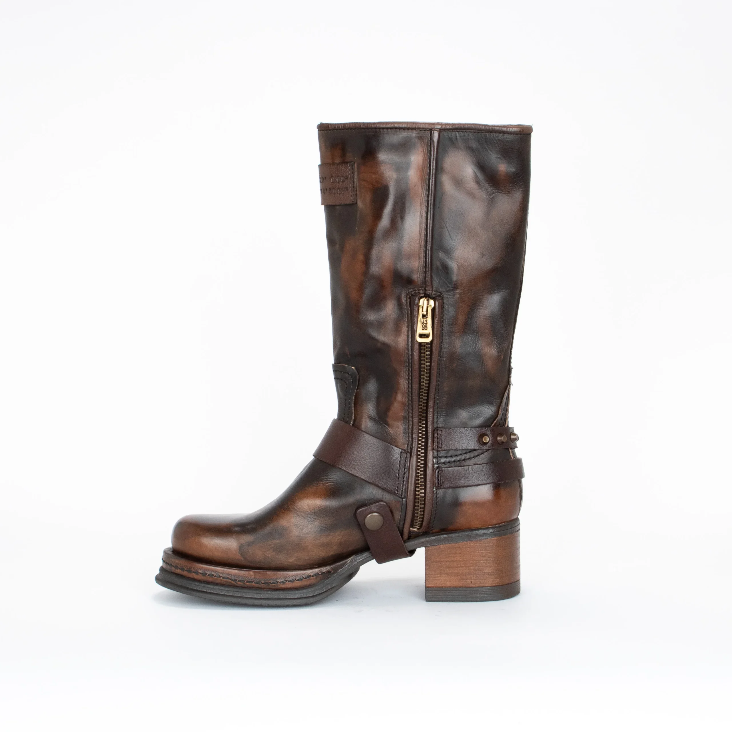 Faites une déclaration audacieuse avec ces bottes pour femmes A.S.98 au style usé unique. Leur cuir italien de qualité supérieure et leurs accents dorés offrent un style élégant, tandis que leurs bouts arrondis assurent un style versatile. Le talon en bloc apporte plus de hauteur tout en offrant stabilité avec sa semelle en caoutchouc adhérent.