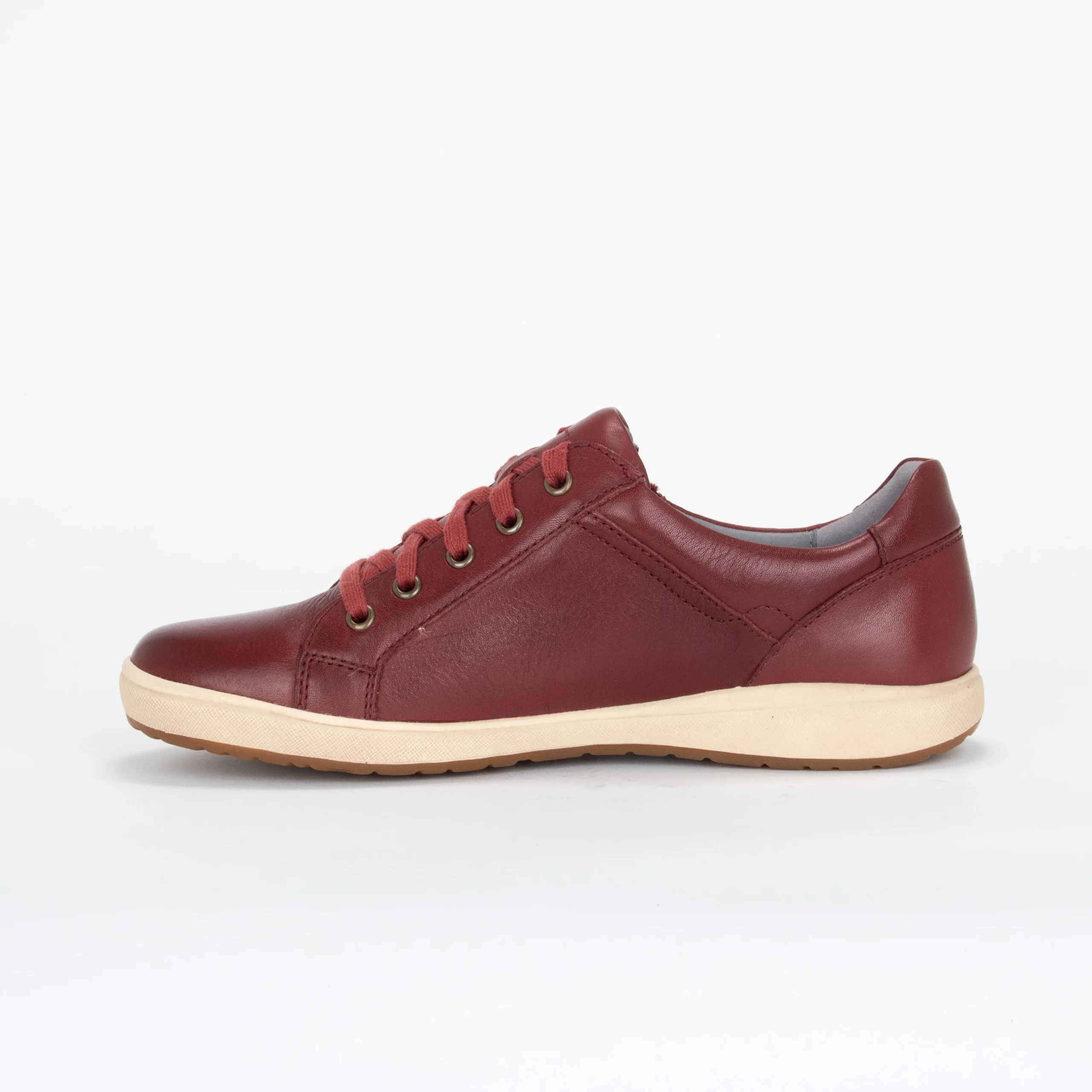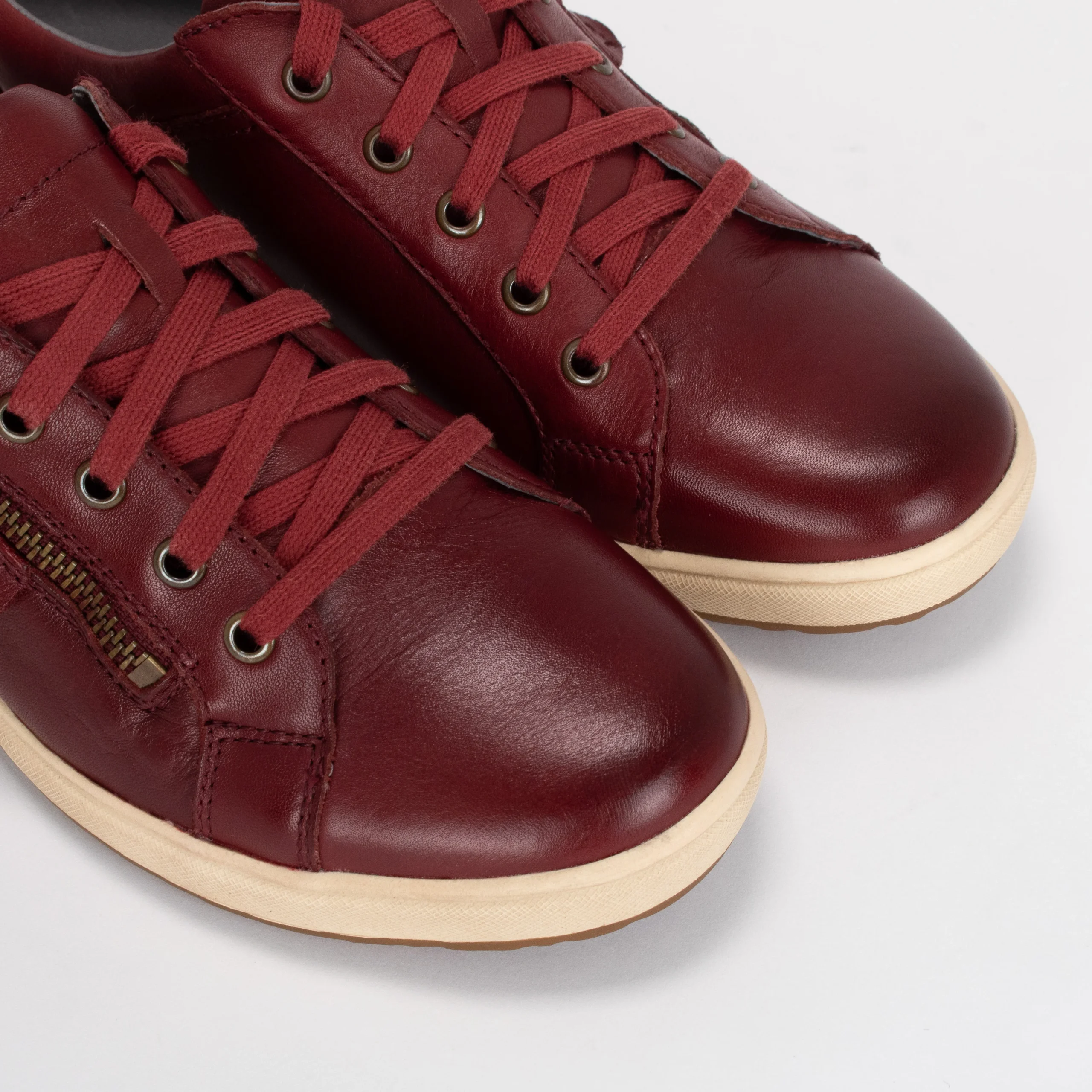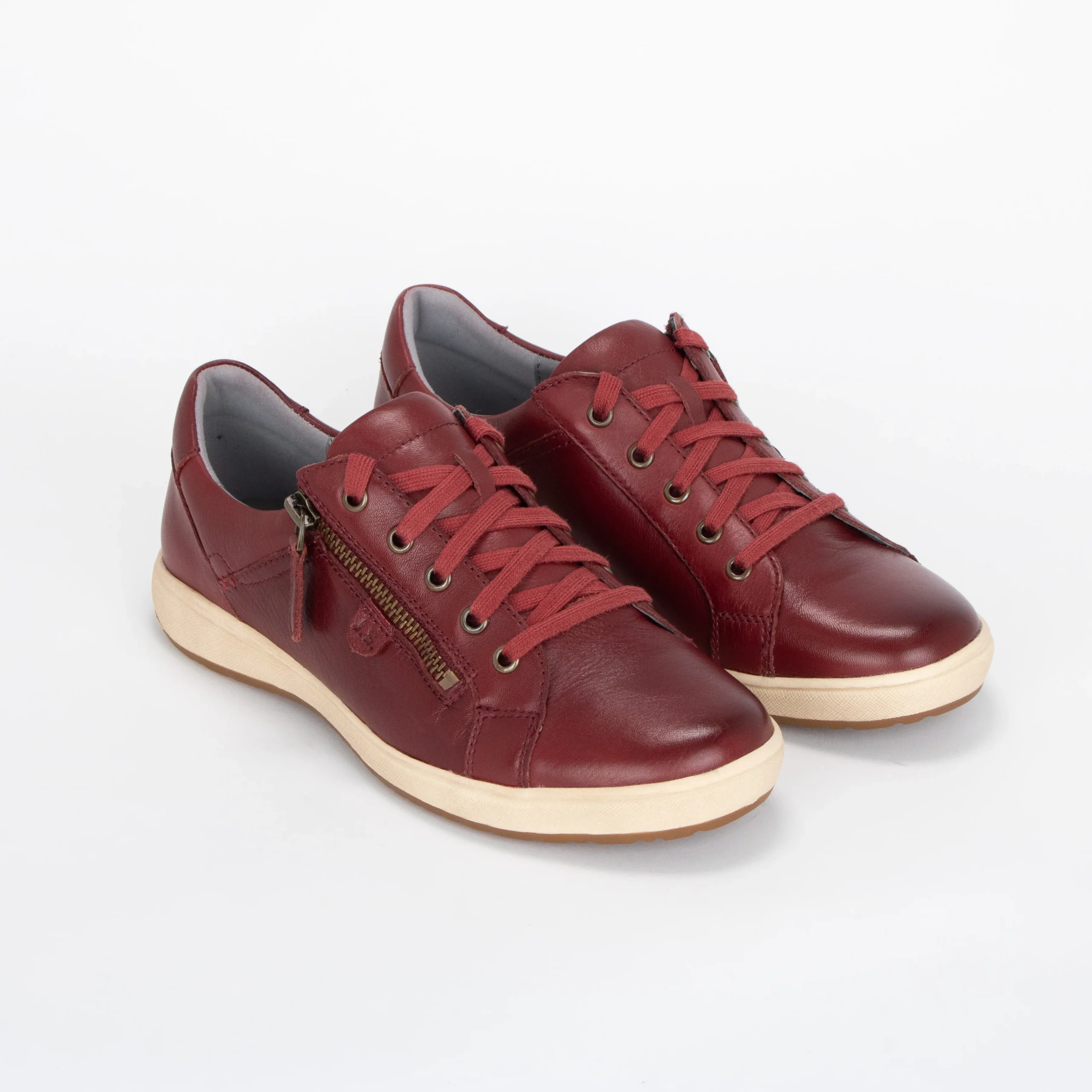 La chaussure décontractée pour femme CAREN 12 de Josef Seibel est un incontournable pour toute garde-robe. Faite de cuir, elle vous accompagnera parfaitement tout au long de la journée avec une semelle intérieure confortable et rembourrée ainsi qu’une doublure en cuir souple. Sa finition en cuir bordeaux et sa semelle blanc cassé s’agenceront magnifiquement avec vos tenues d’automne. Sa fermeture éclair permet un enfilage facile et rapide et ses lacets un ajustement personnalisé.