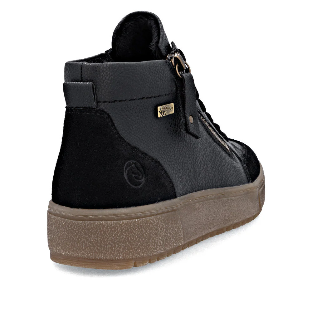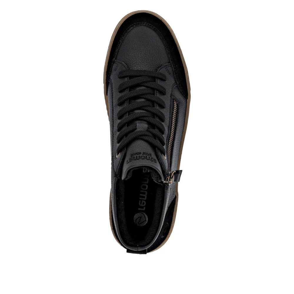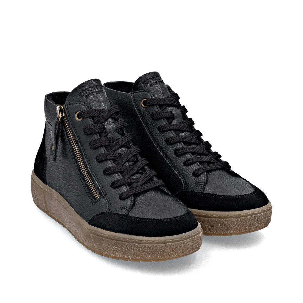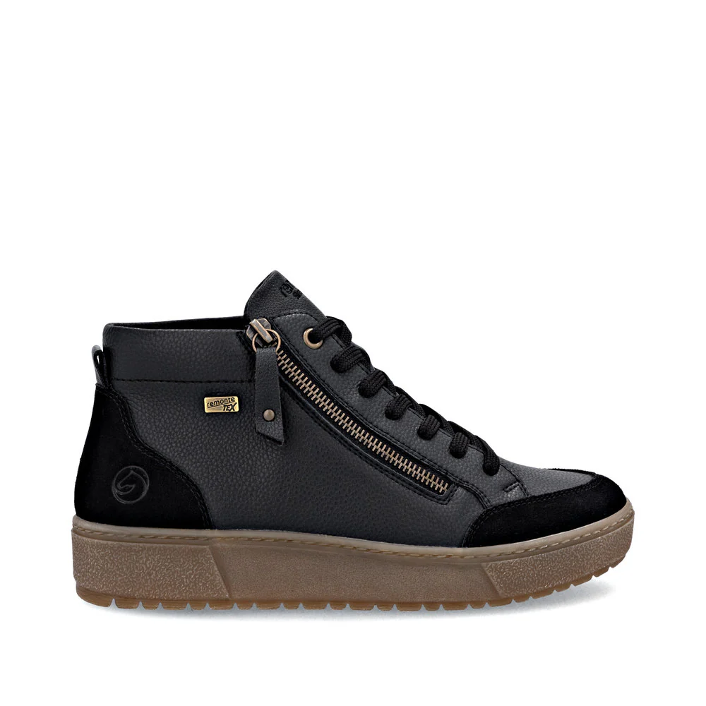 Ces chaussures montantes pour femmes signées Remonte sont idéales pour accompagner les saisons de transition avec style et confort. Le système lacets et fermeture éclair assure un maintien sûr tout en simplifiant l’enfilage au quotidien. La semelle amortissante et adhérente, associée à une semelle intérieure rembourrée et amovible, offre un confort optimal à chaque pas. Grâce à la technologie déperlante remonteTEX, vos pieds restent au sec même par temps humide, pour des déplacements en toute sérénité.