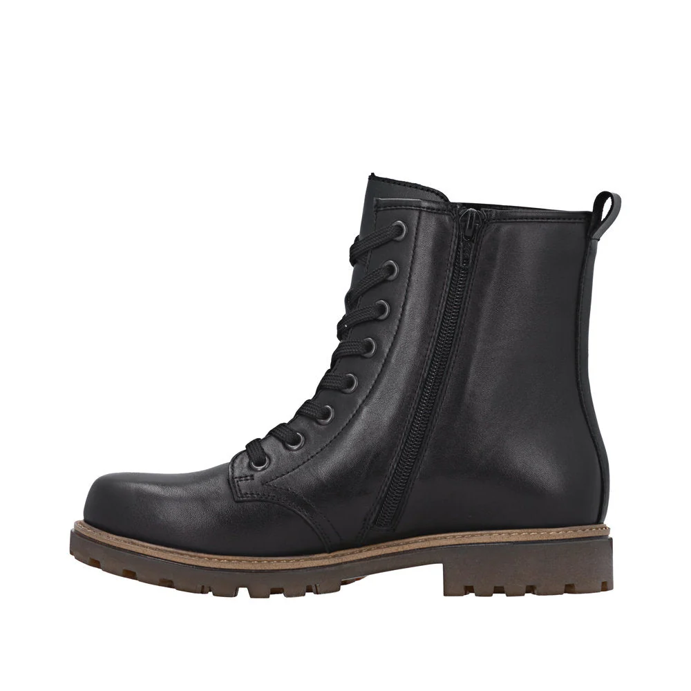 Ces bottillons pour femmes signées Remonte sont idéales pour accompagner les saisons de transition avec style et confort. Le système lacets et fermeture éclair assure un maintien sûr tout en simplifiant l’enfilage au quotidien. La semelle amortissante et adhérente, associée à une semelle intérieure rembourrée et amovible, offre un confort optimal à chaque pas. Grâce à la membrane imperméable remonteTEX, vos pieds restent au sec même par temps humide, pour des déplacements en toute sérénité.