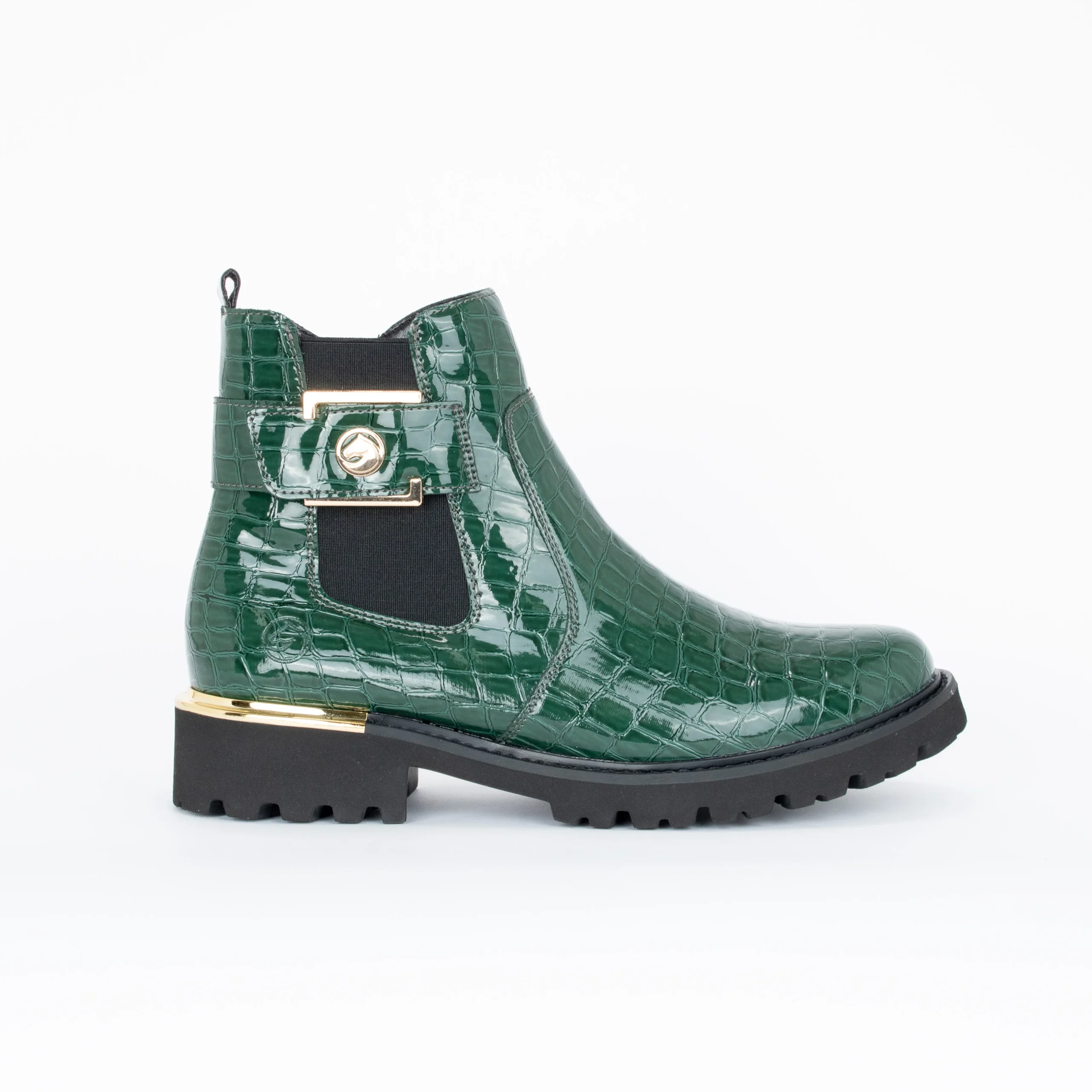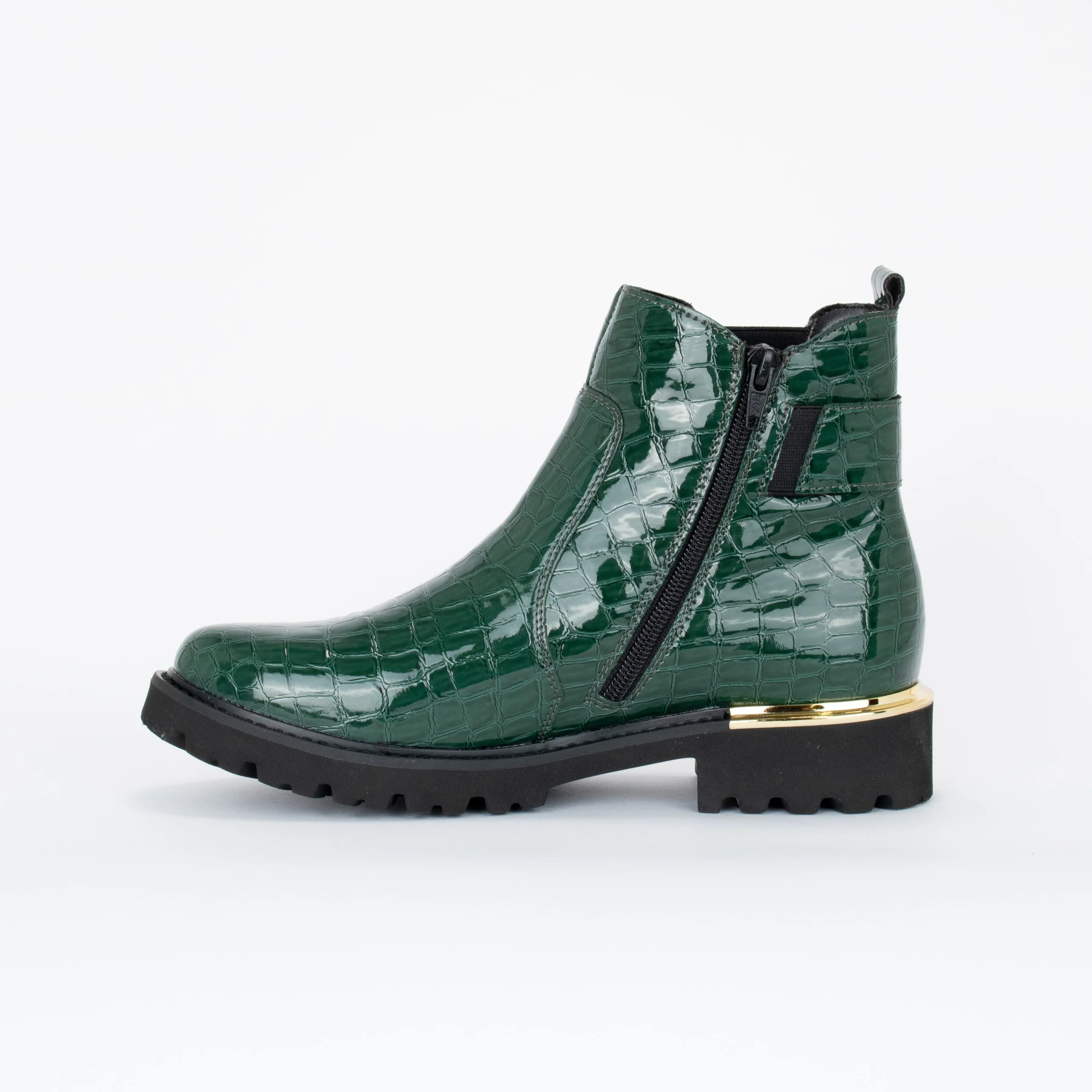 Apportez une touche d’élégance et de couleur à votre garde-robe avec ces bottillons en cuir verni synthétique effet crocodile. Ornementés d’éléments dorés, ils s’agencent facilement avec toutes sortes de tenues et sont parfaits pour une utilisation quotidienne. Leur fermeture éclair latérale permet un enfilage rapide.