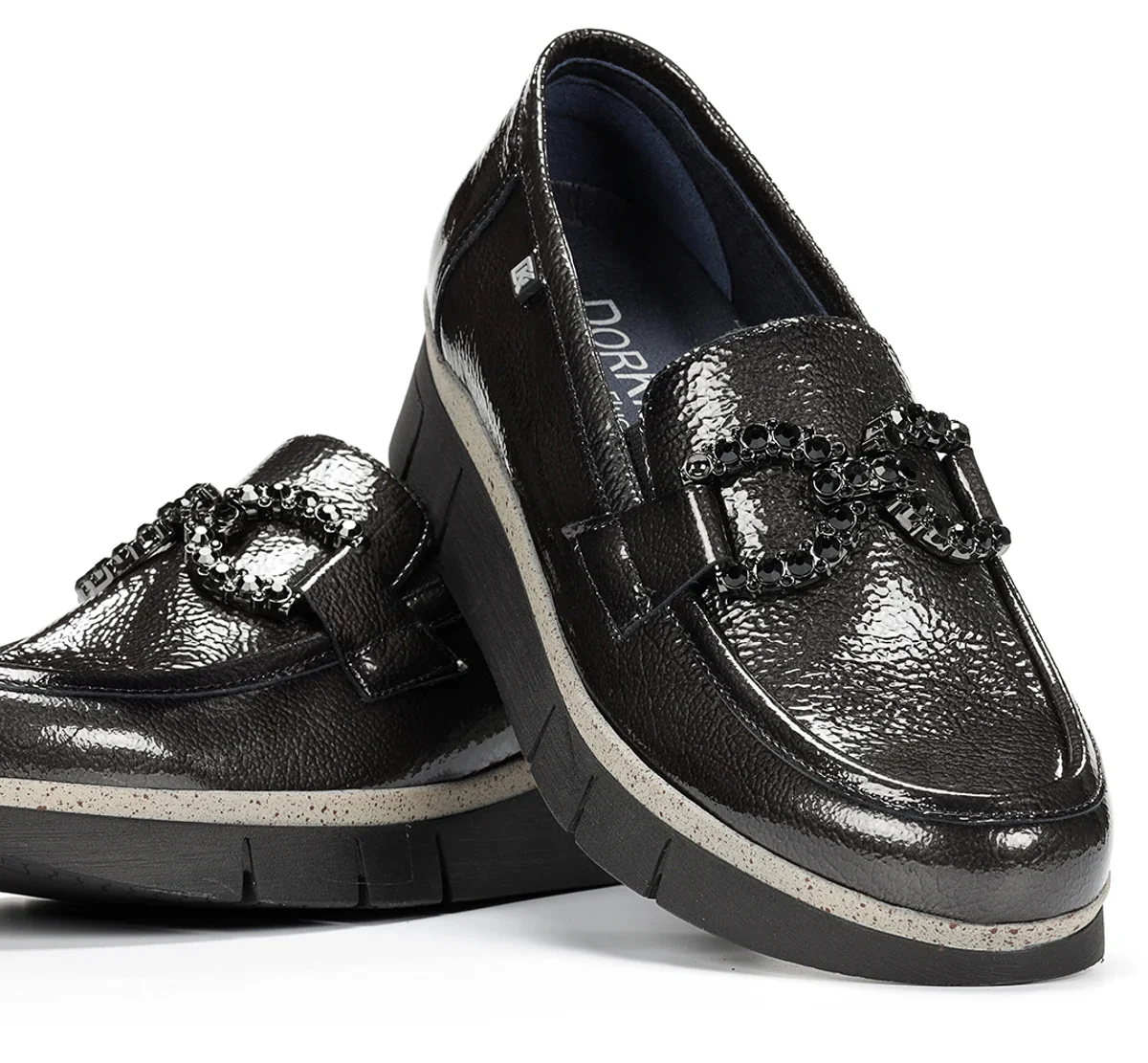 Tige : cuir verni Doublure : Textile Semelle intérieure : Amovible Talon : 4 cm (1,6 po) Fermeture : Élastique