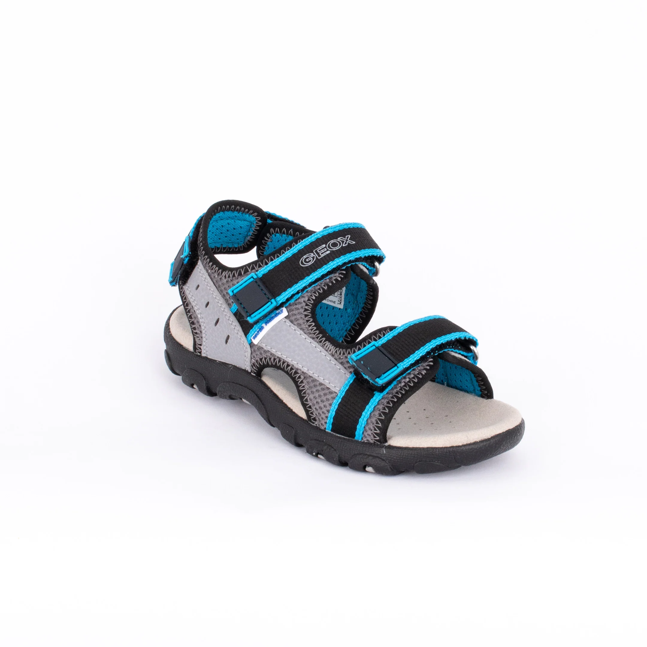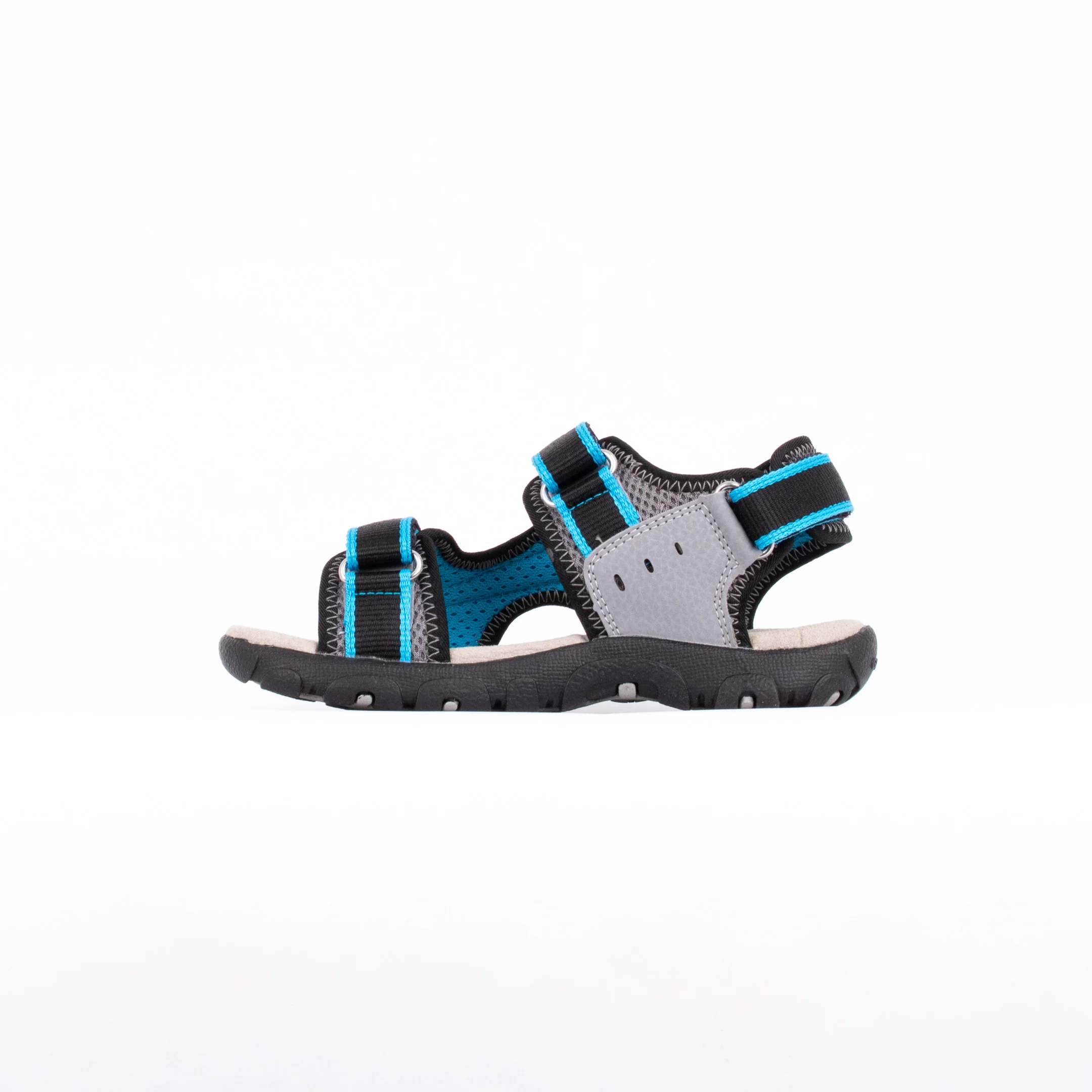 Sandale pour garçons polyvalente et résistante à l’eau avec un design polyvalent. Fabriquée à partir de maille respirante et de Durabuck en relief avec des détails turquoise, la sandale STRADA est le choix parfait pour les aventures en plein air des enfants en été, y compris celles qui impliquent de l’eau.