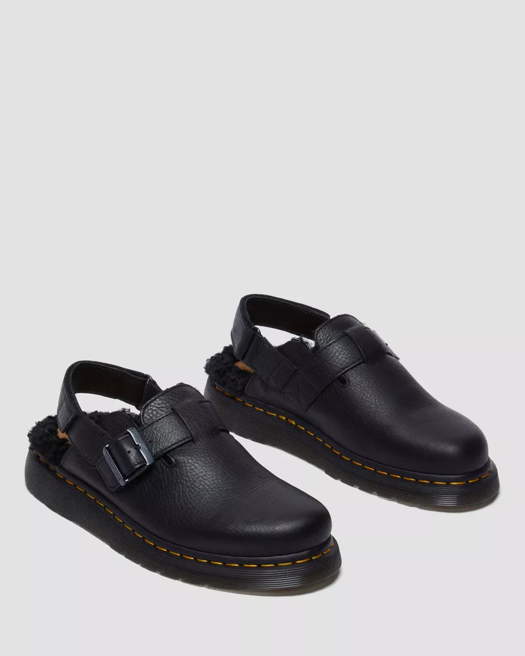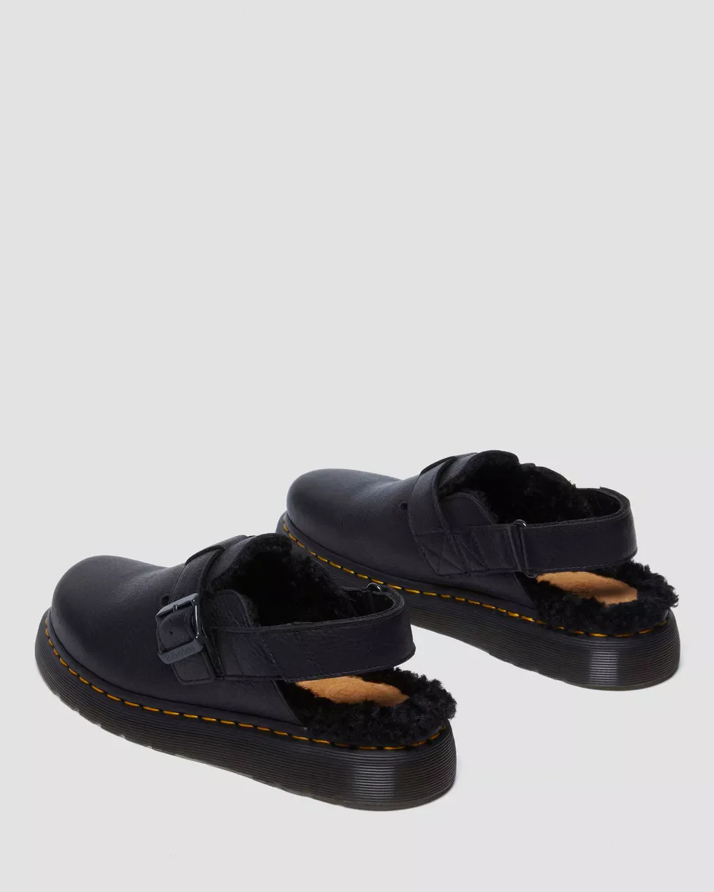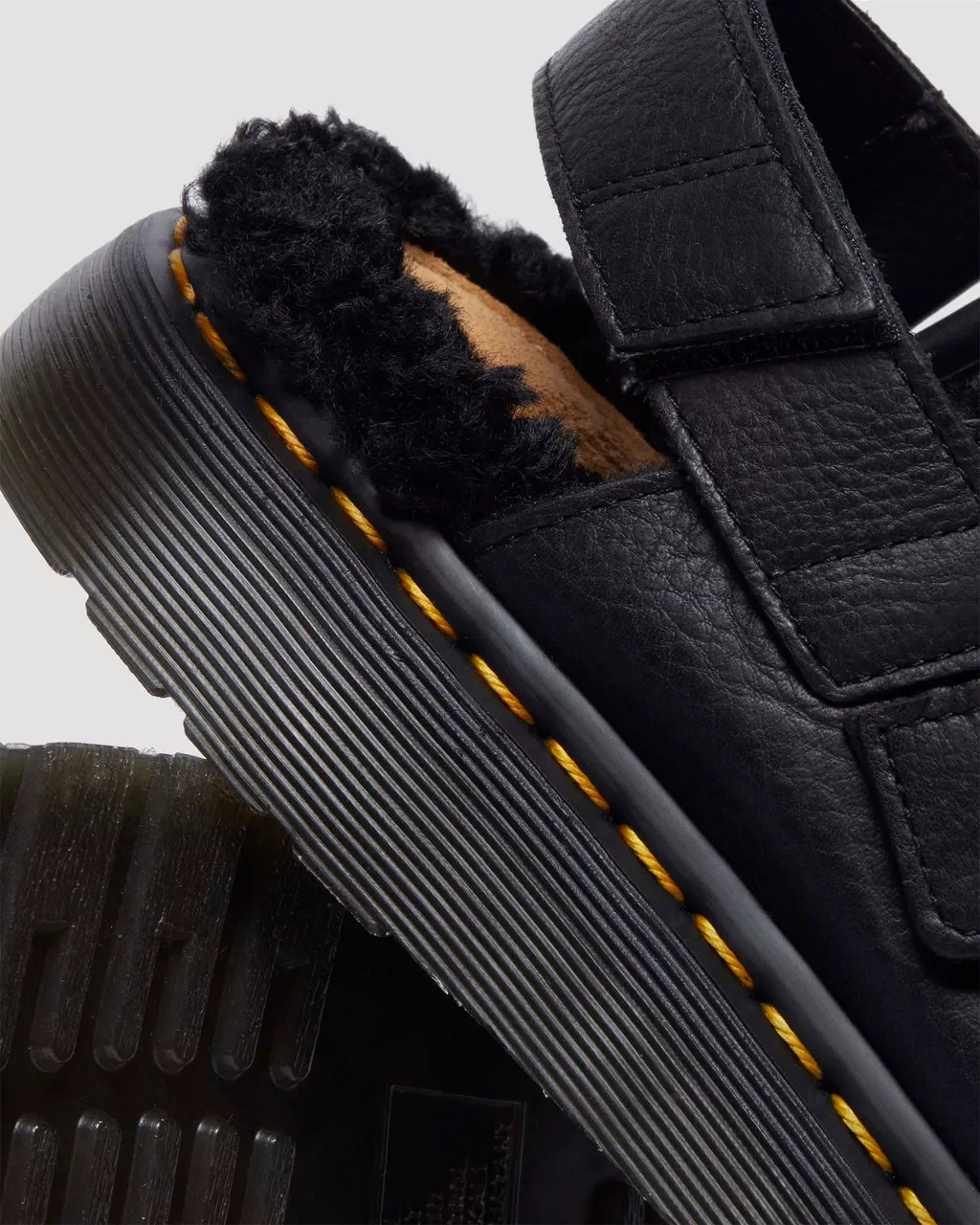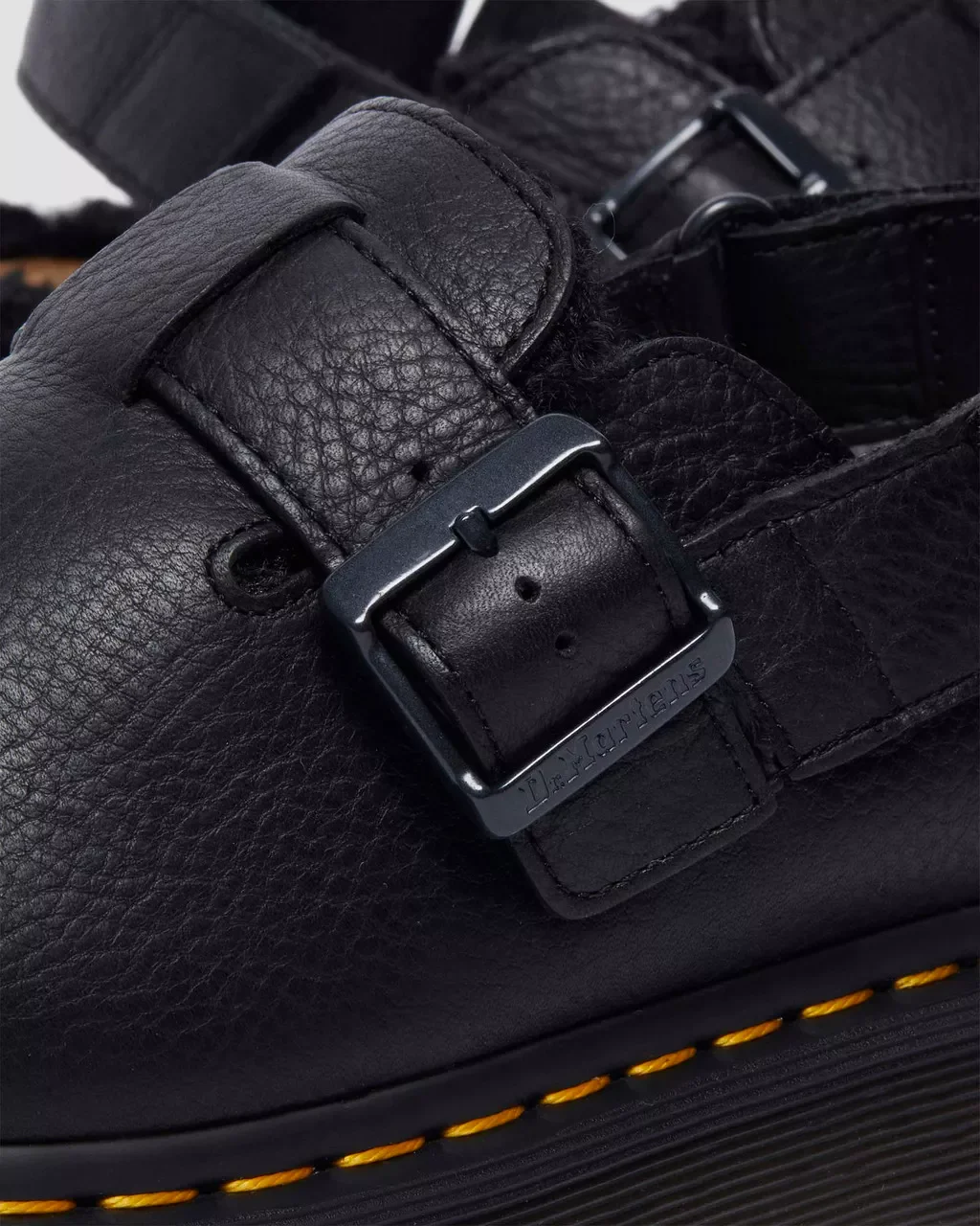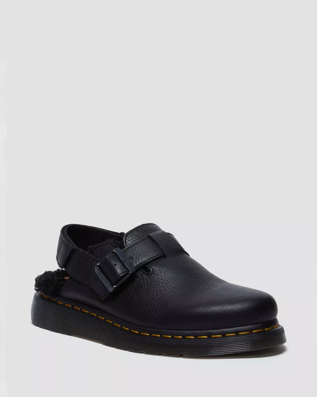 Jorge II pour femme: Enfilez-les. Glissez-les. Et partez. Dr.Martens a repris sa silhouette à succès Jorge II et y a ajouté une doublure en polaire pour la préparer aux mois les plus froids. À la fois chaussure et sandale, cette mule polyvalente est aussi facile à enfiler qu’à porter. Fabriquée en cuir Ambassador, un cuir épais et gras qui a été passé au tambour pour lui donner plus de caractère, la chaussure doublée de fourrure Jorge II est équipée d’une boucle réglable pour sécuriser l’ajustement et repose sur une semelle Shore perforée des coutures jaunes emblématiques.