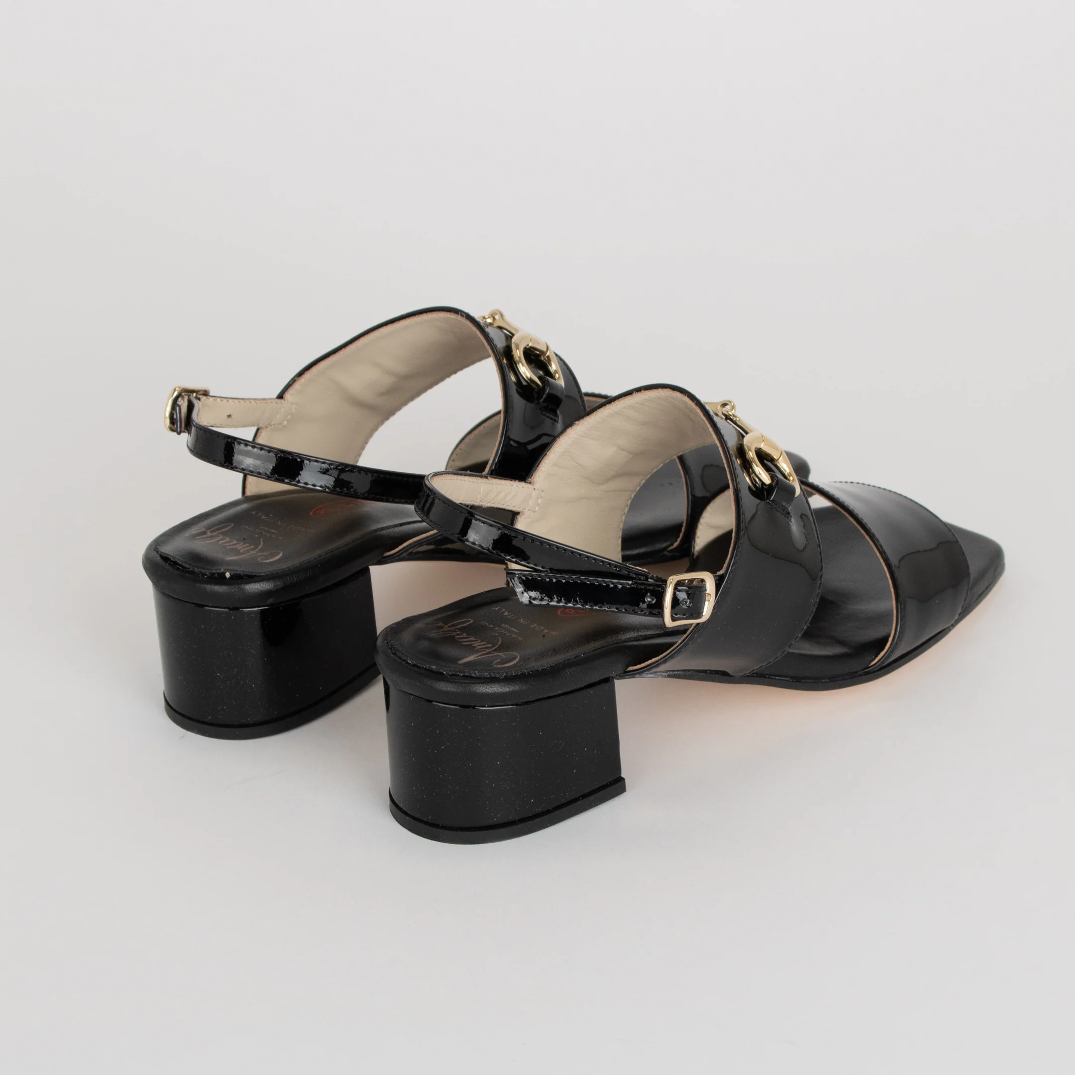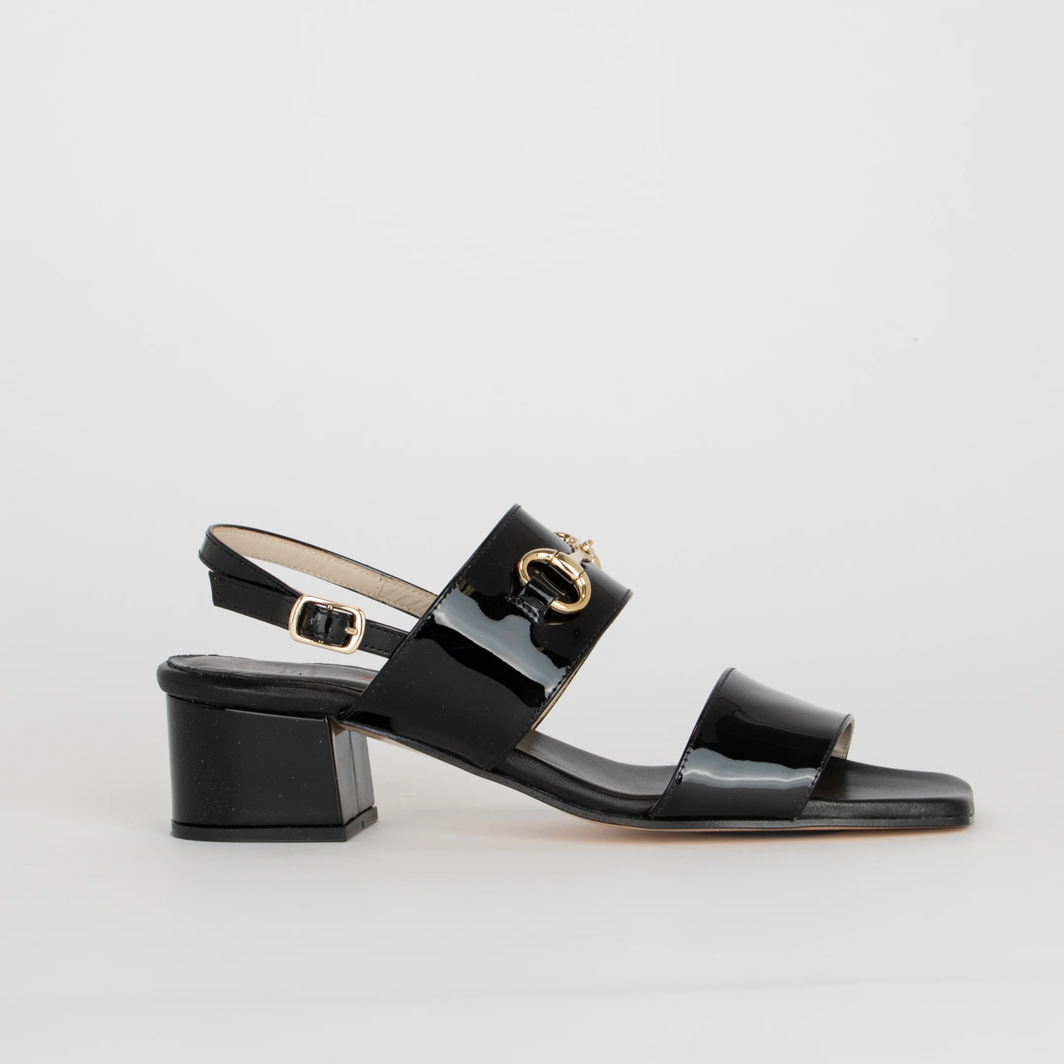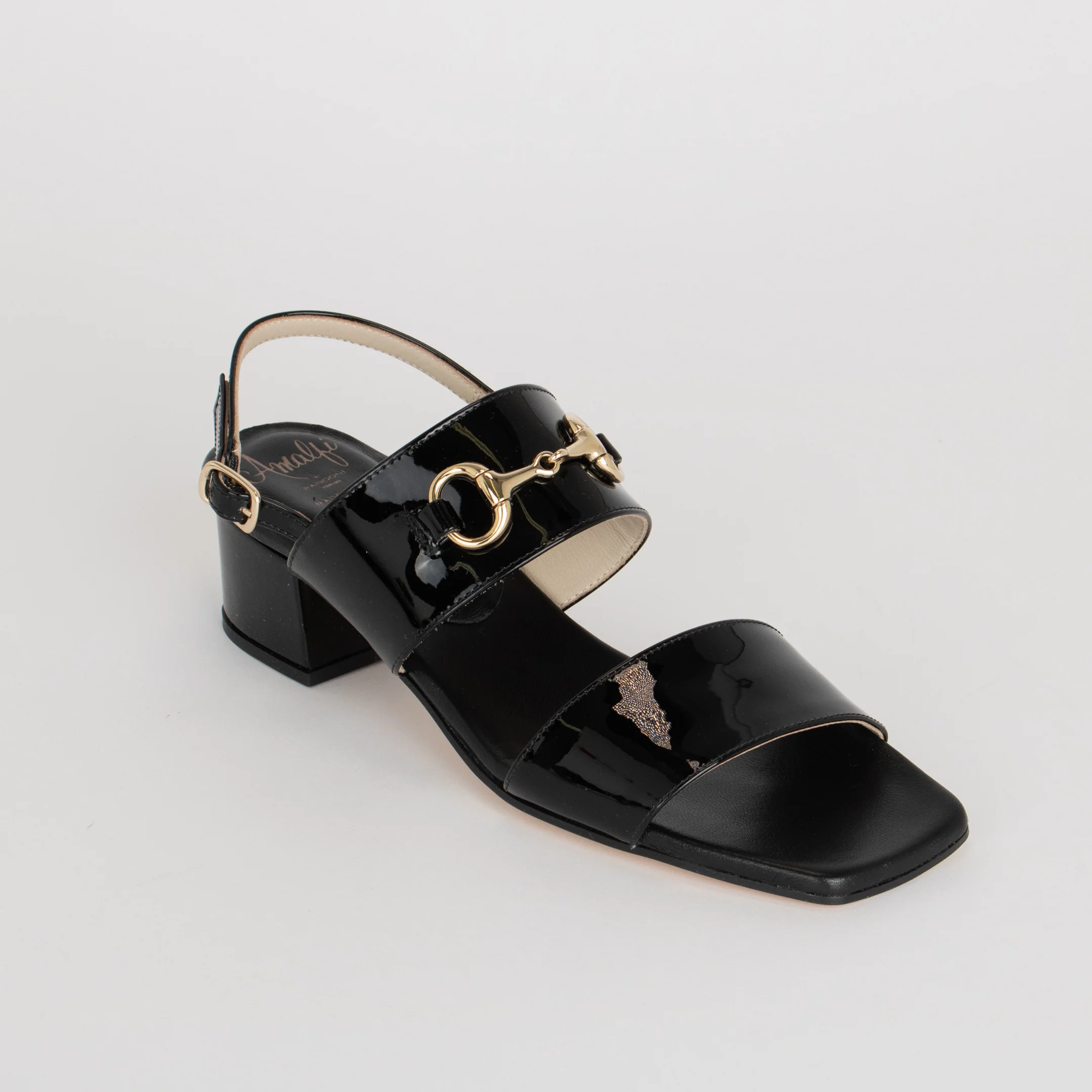La sandale pour femme MARGHERITA d’Amalfi se veut classique et féminine : une mule posée sur un talon bloc confortable. La courroie du haut est décorée d’un ornement doré.