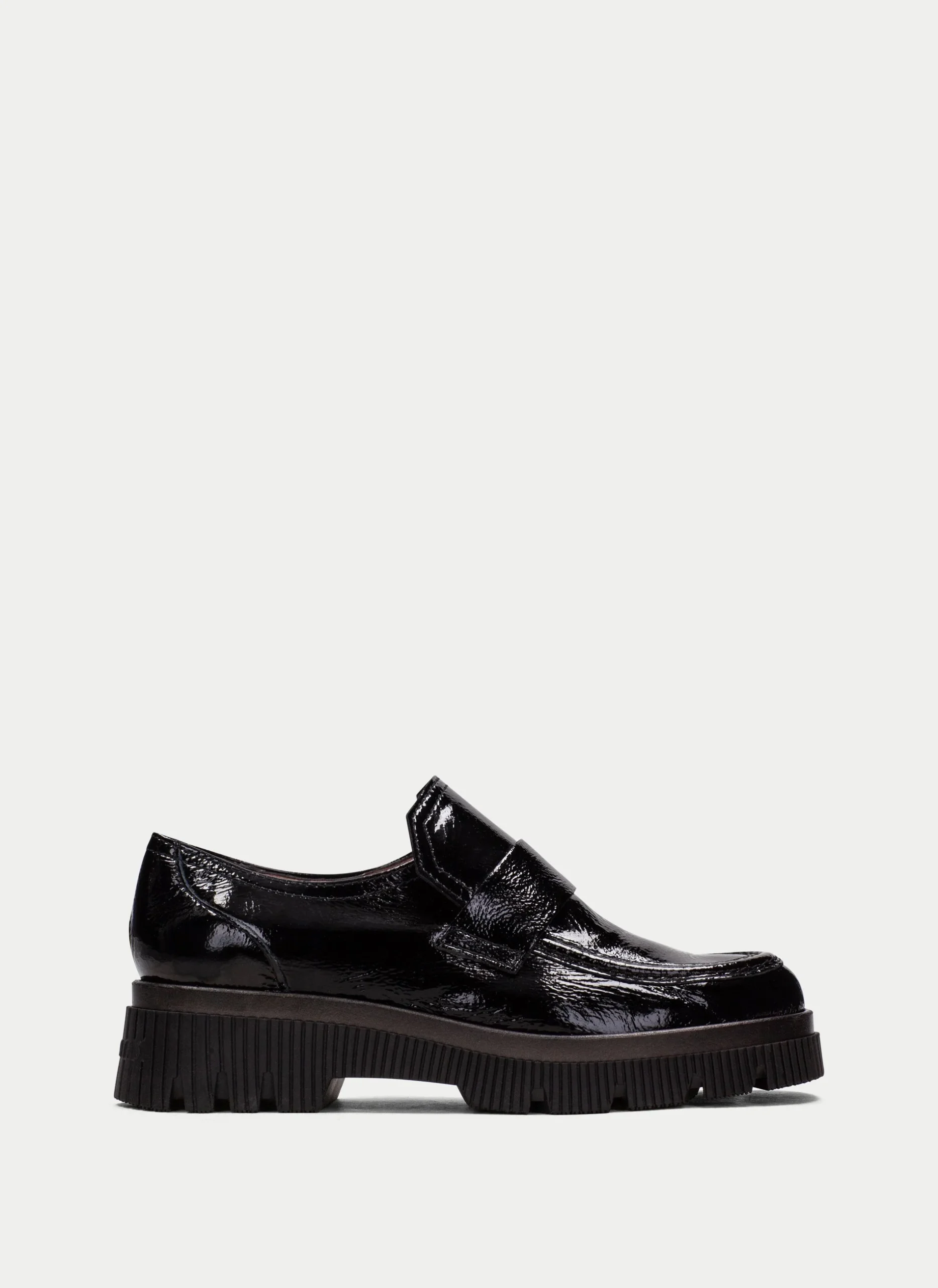 Le mocassin en cuir verni MEGAN est doté d’un talon légèrement compensé et est fabriqué en cuir verni. La semelle intérieure est en cuir tandis que la semelle extérieure est en caoutchouc, ajoutant confort et durabilité. Fabriqué à la main en Espagne, ce mocassin ajoute un style sophistiqué à n’importe quel look.