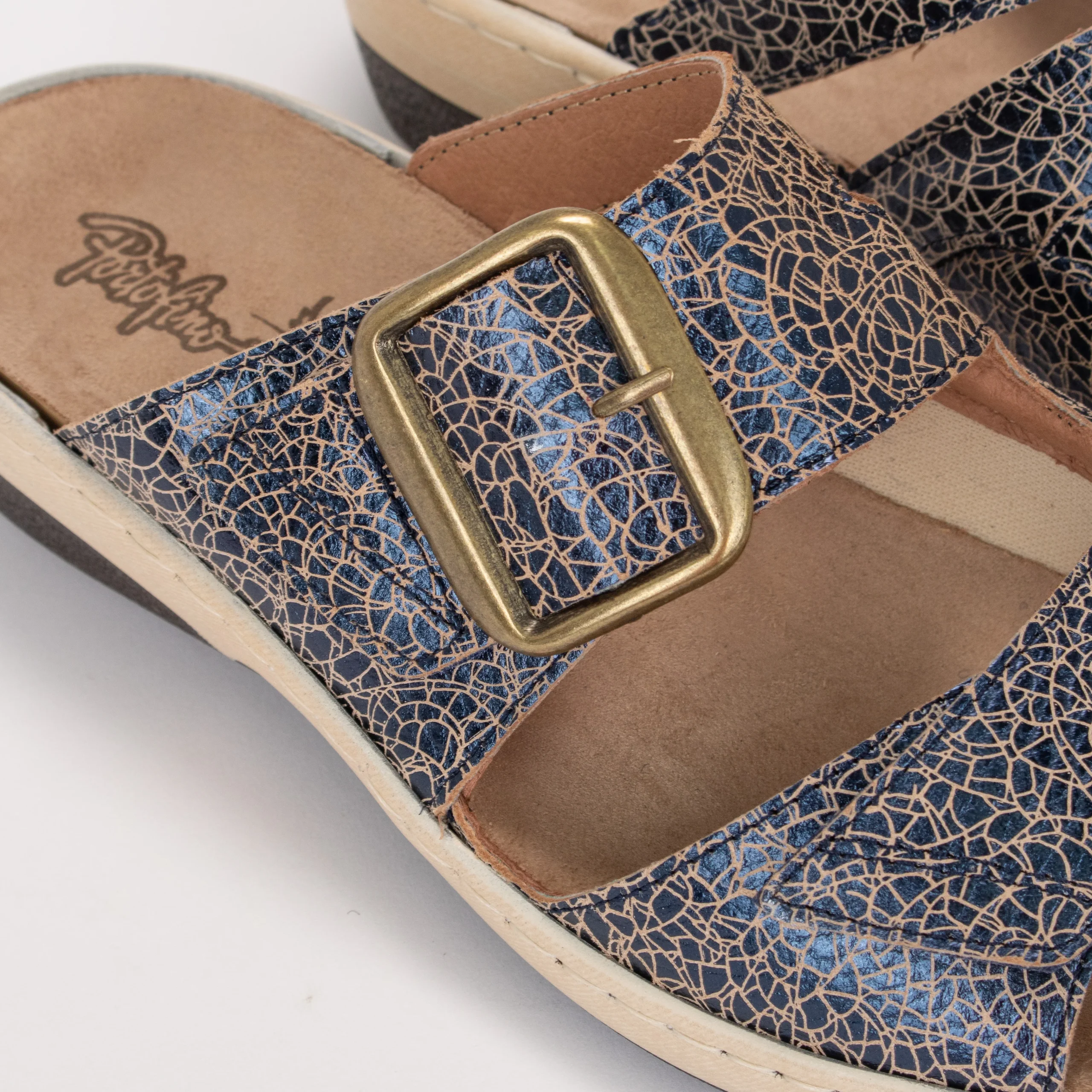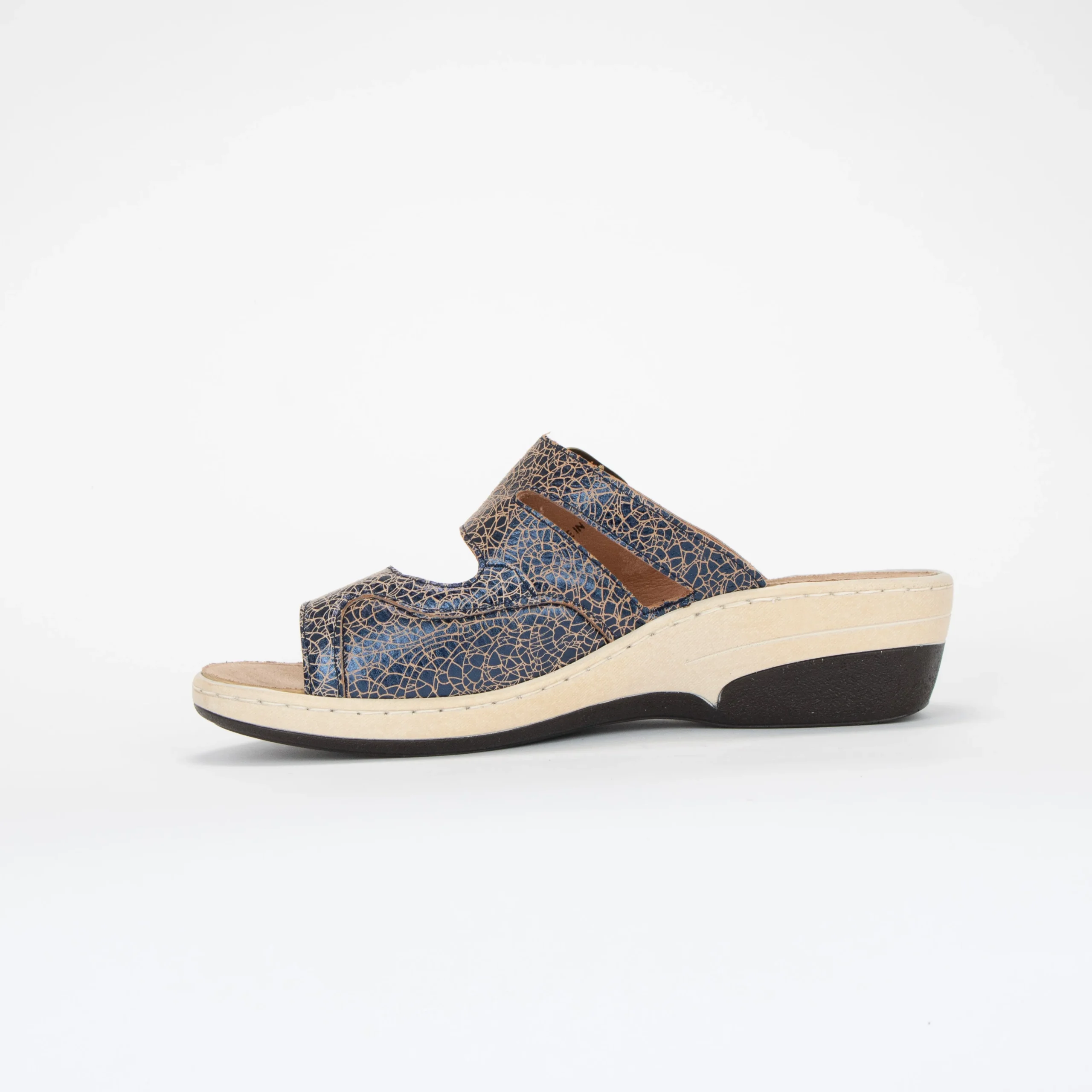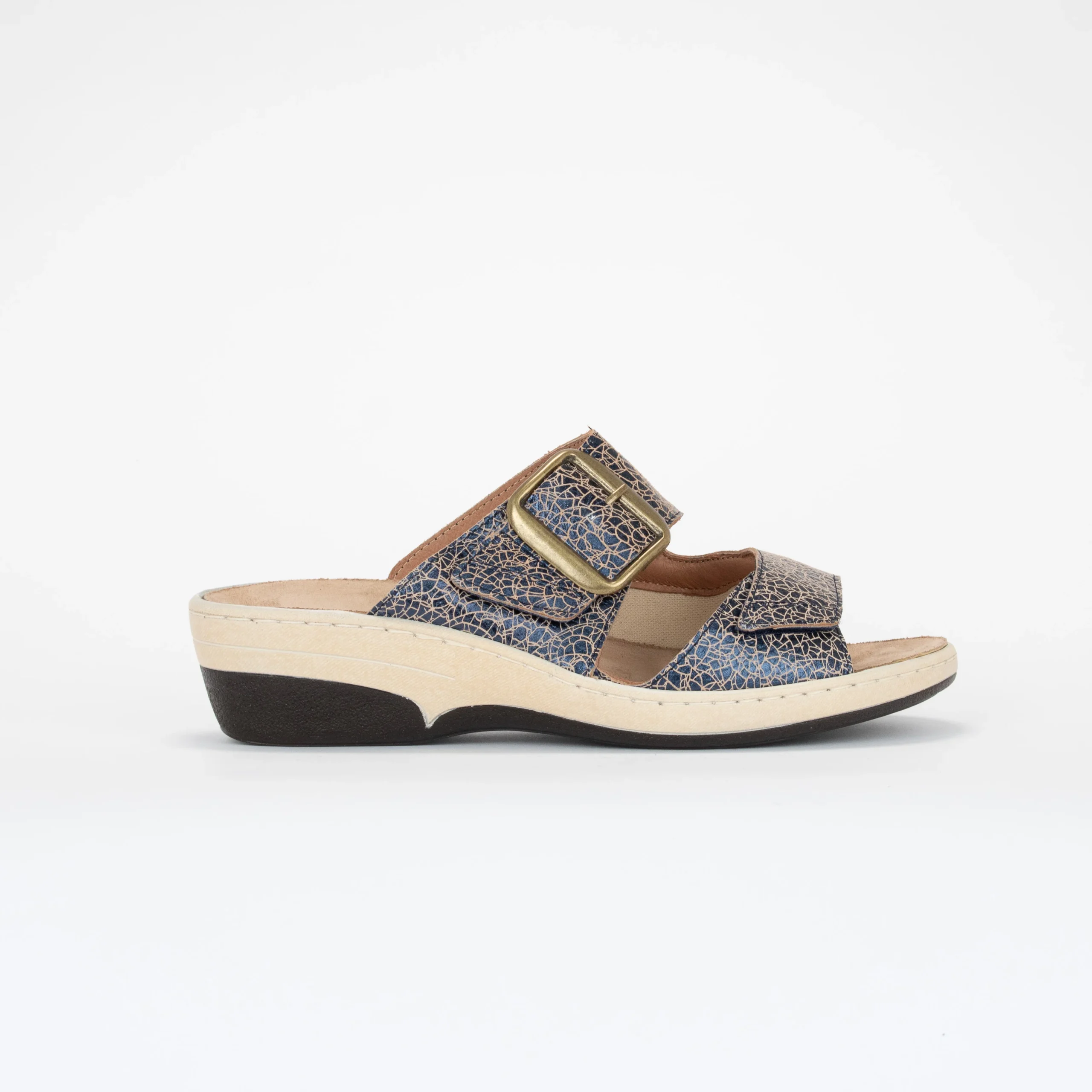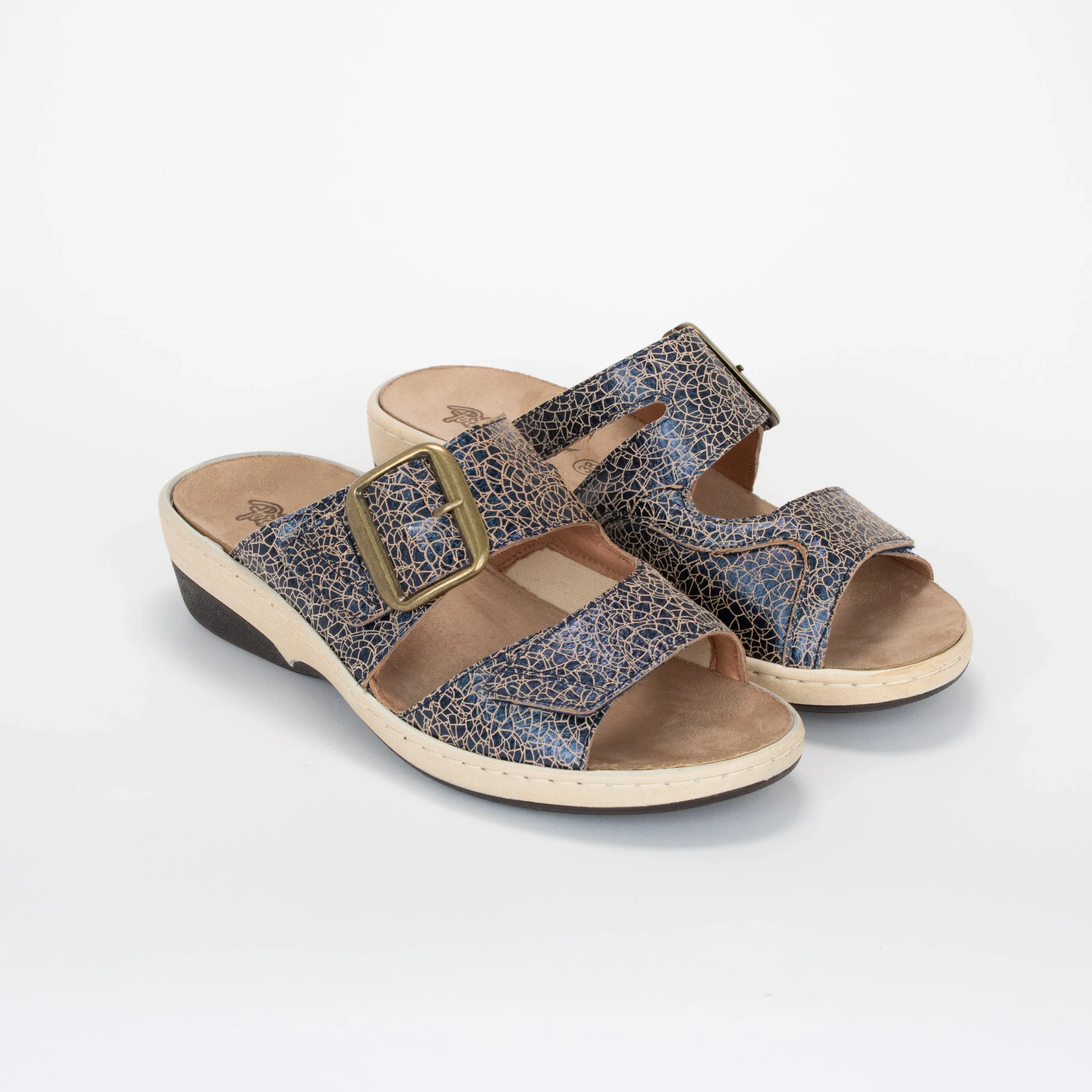 Cette mule NATALIA à petit talon vous donnera un peu plus de hauteur sans toutefois négliger votre confort. Ornée d’une boucle décorative, elle est munie de deux courroies ajustables à velcro. Elle assure le port d’orthèse en discrétion et avec confort.