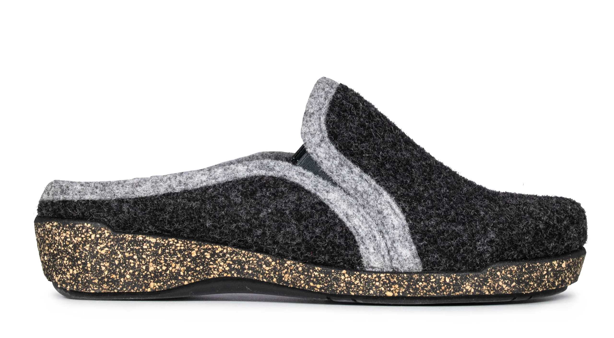 Ce modèle de pantoufle pour femme chausse un pied de largeur moyenne à large et convient à certaines orthèses plantaires. Modèle ND-9360 de la marque Portofino. Empeigne : feutre de laine Semelle amovible : feutre de laine Assise plantaire : moulée Semelle extérieure : microliège Ajustement : sans attache, mule à enfiler Fabrication : Espagne