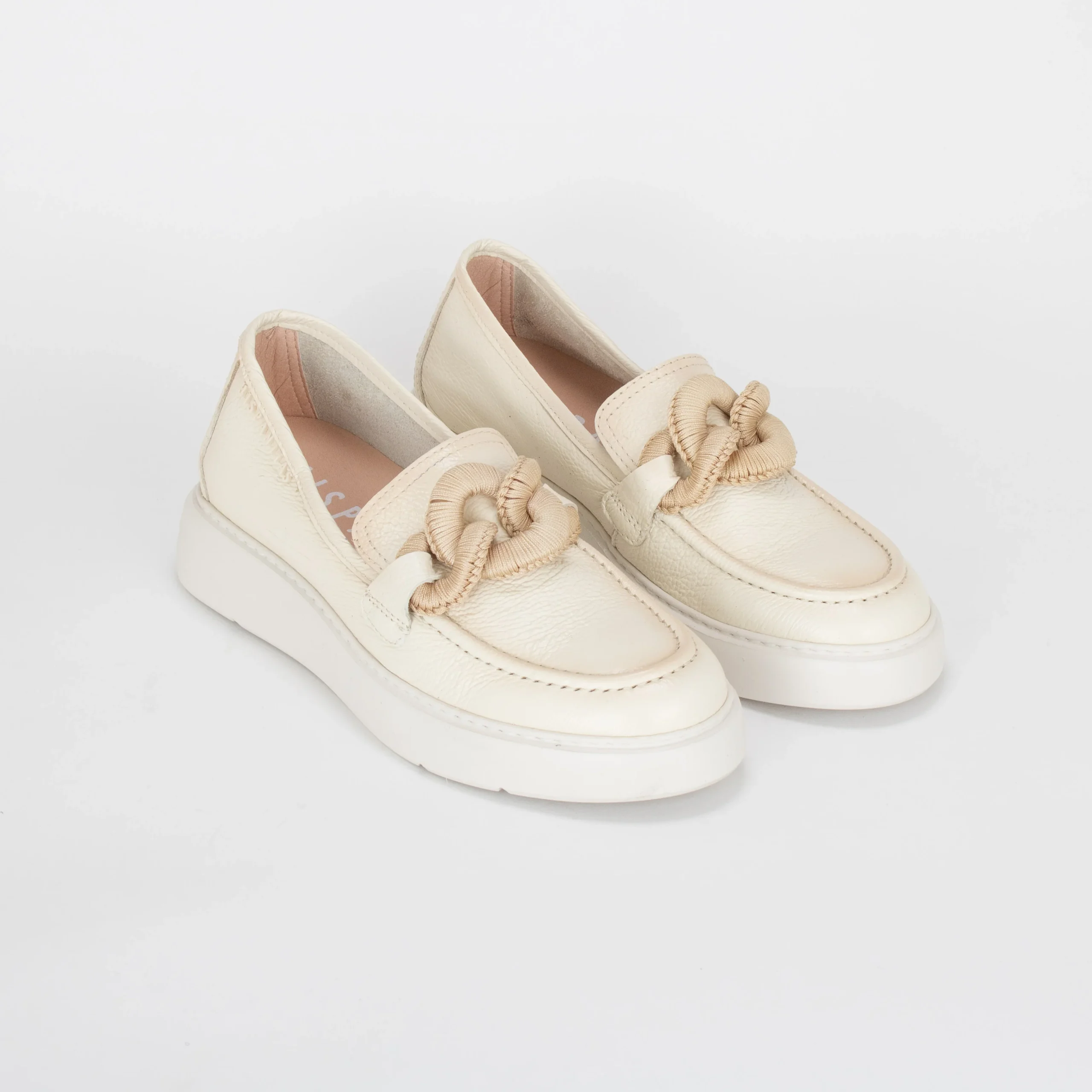 La chaussure OCEANA présente le détail spécial d’un ornement à maillons en fil tressé à la main sur le cou-de-pied. Cette chaussure incorpore la technologie Triflow de triple rembourrage, qui confère un effet de souplesse lors de la marche, et a également une semelle intérieure amovible.