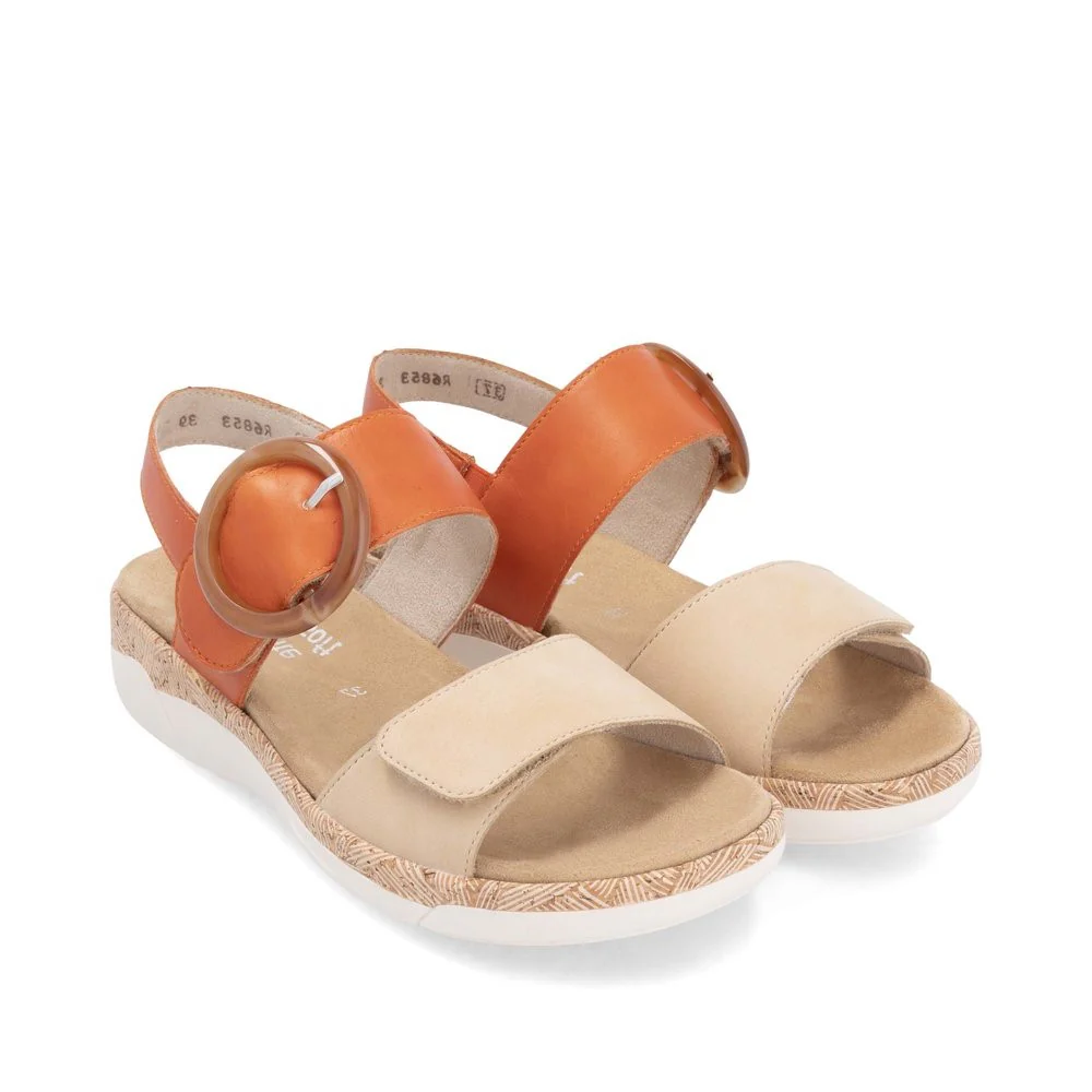 Ces sandales à brides en cuir savent exactement comment allier style et confort. Un maintien idéal et un ajustement parfait sont garantis par de larges brides à velcro et une fine bride au talon. Le design est complété par une semelle intérieure souple et interchangeable ainsi qu’une semelle extérieure légère. Sa couleur ainsi que sa boucle décorative ajoutent un touche de couleur et d’élégance à vos tenues estivales.