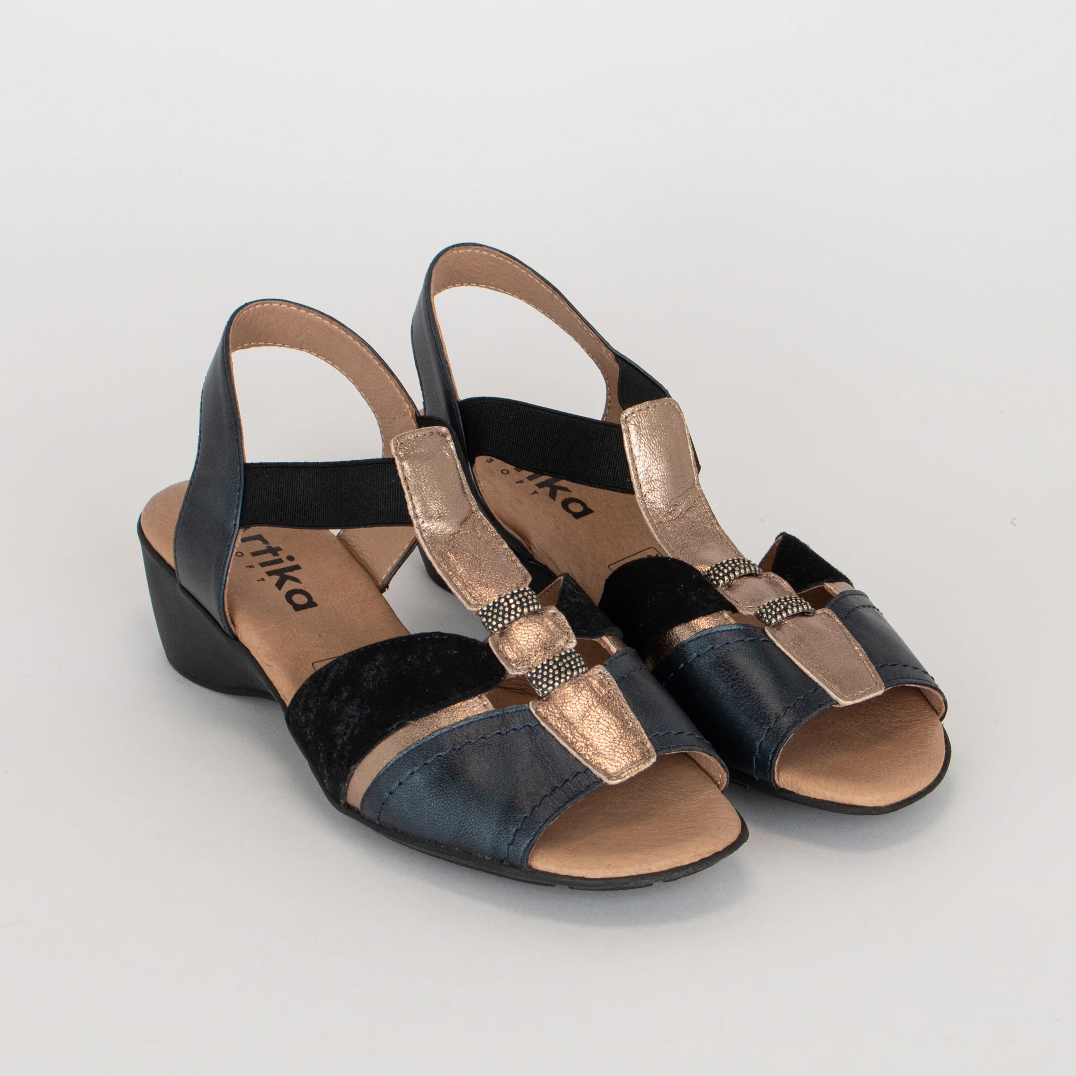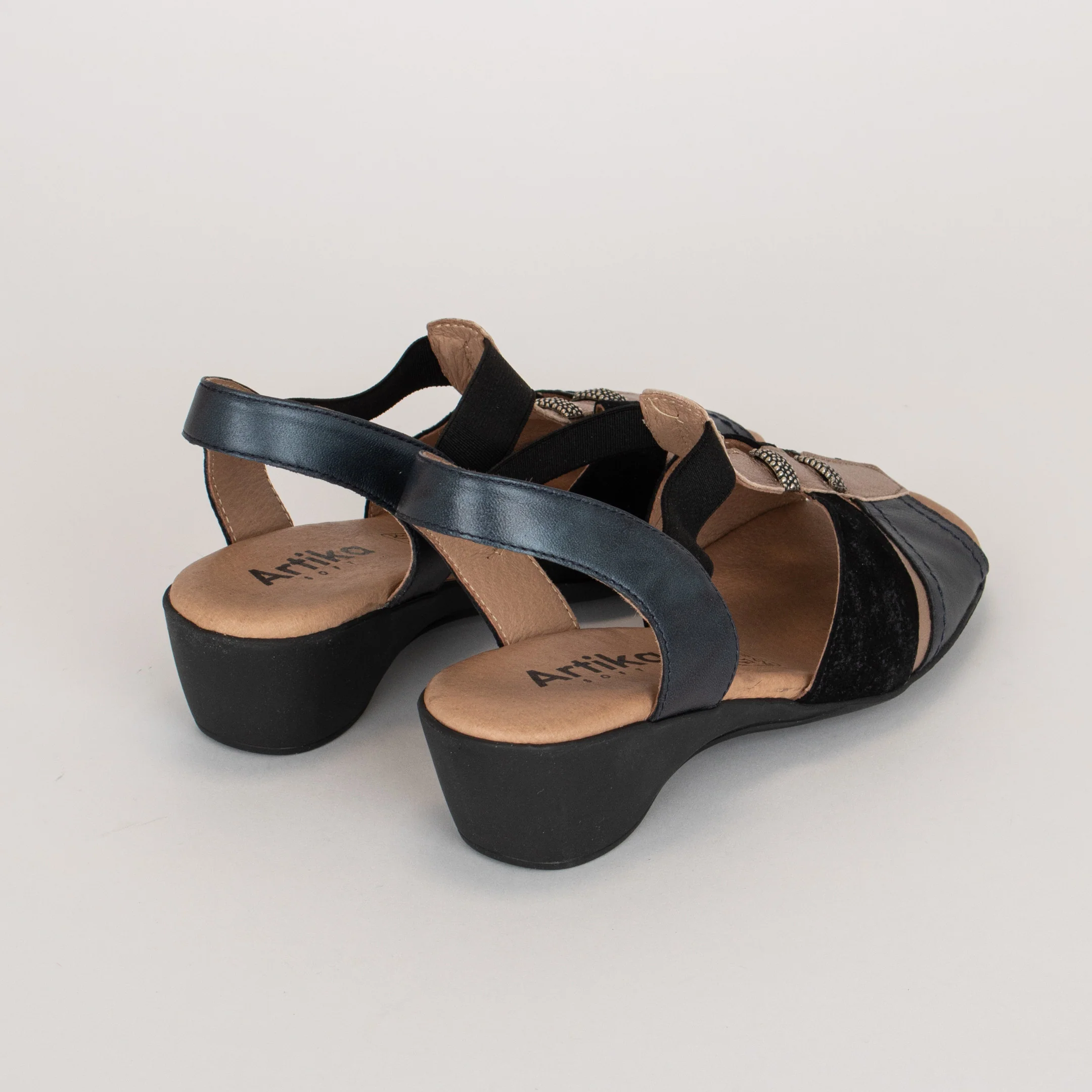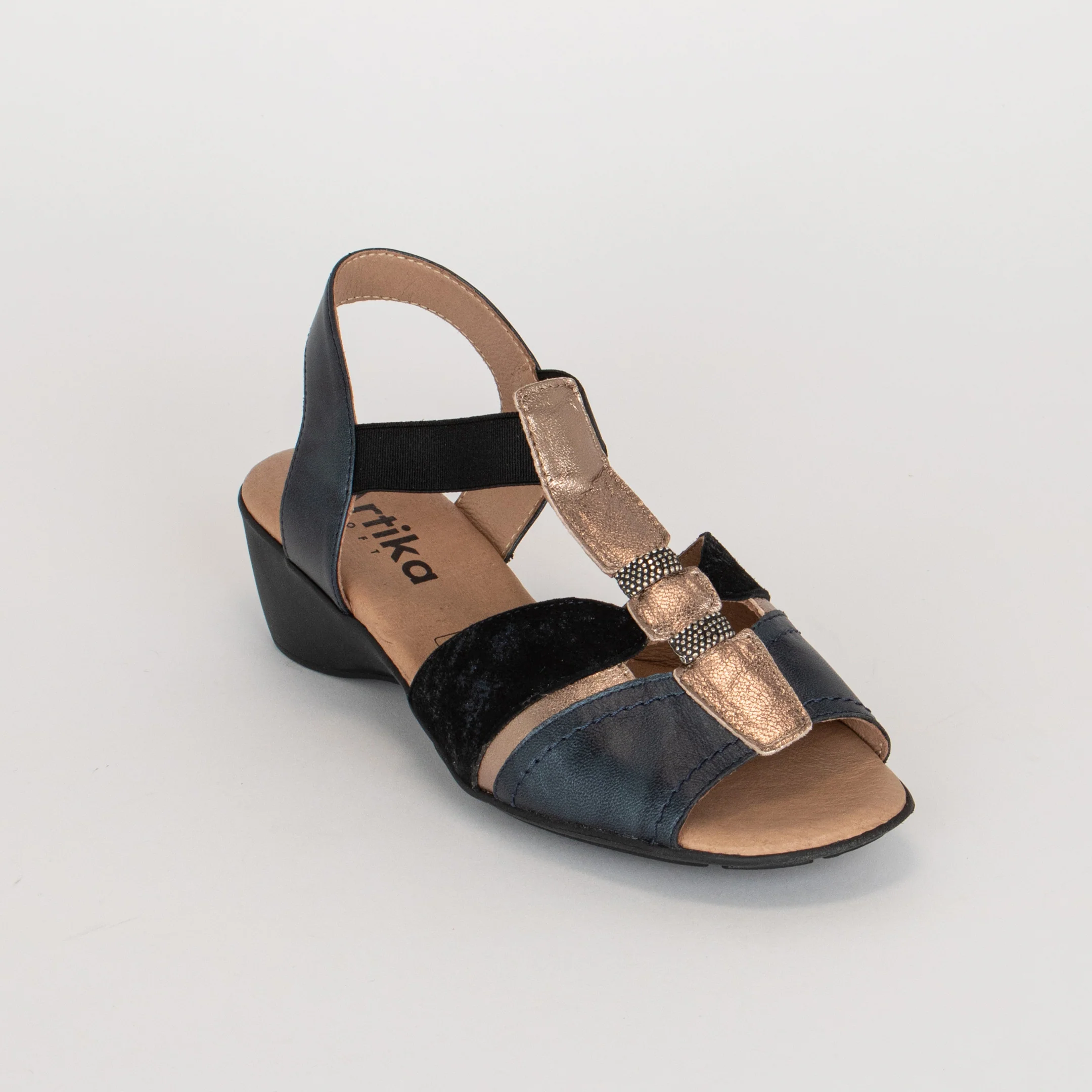 La sandale à enfiler pour femme RICARDI, de la marque Artika, allie confort et matières au fini élégant.