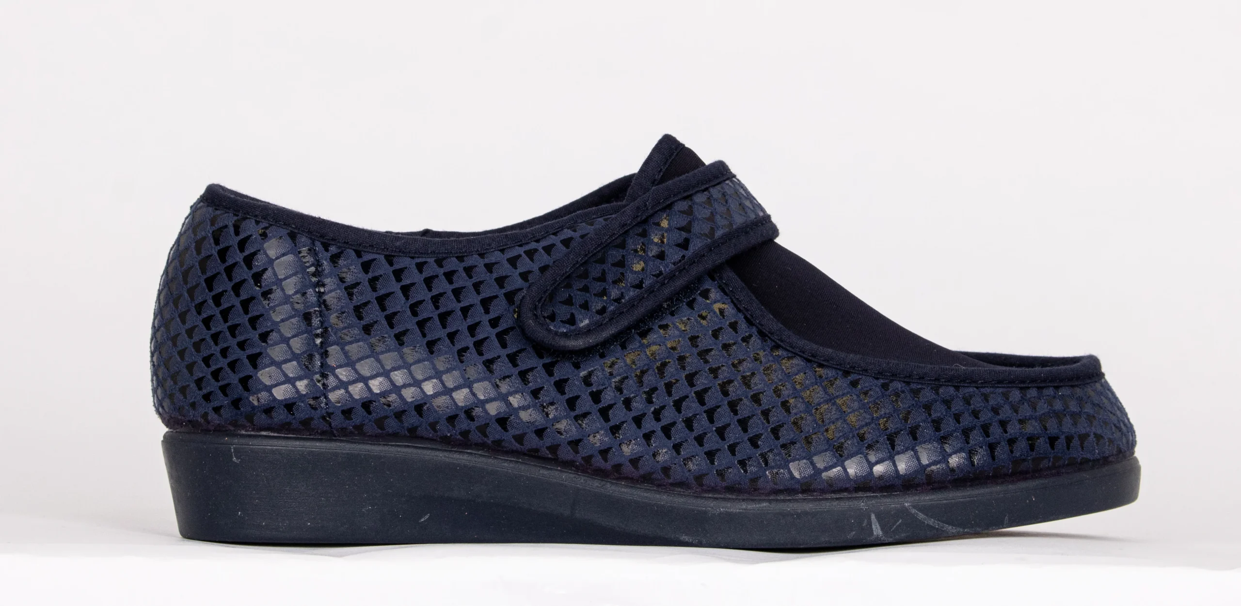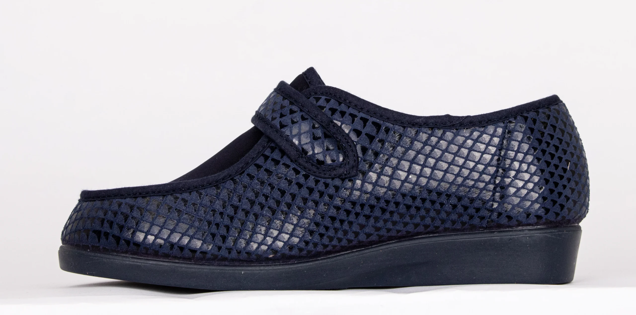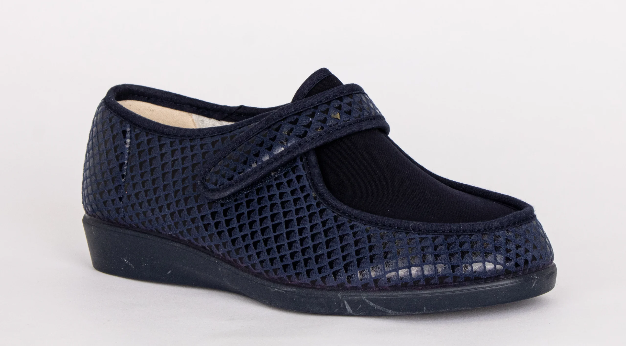La semelle extérieure en caoutchouc synthétique assure stabilité et confort durable. Fabriquée en Espagne, la pantoufle 10225 combine praticité, confort et soutien pour les pieds sensibles.